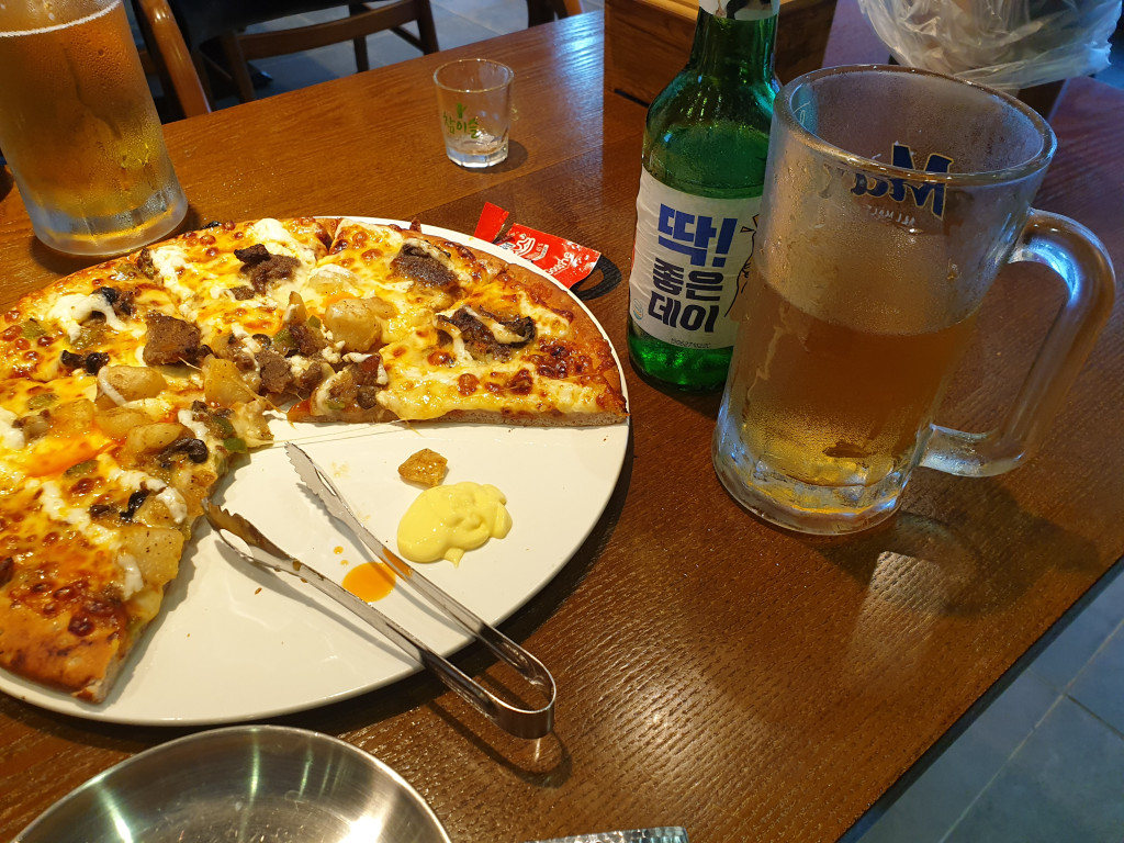피자와 맥주, 소주를 마셨다.