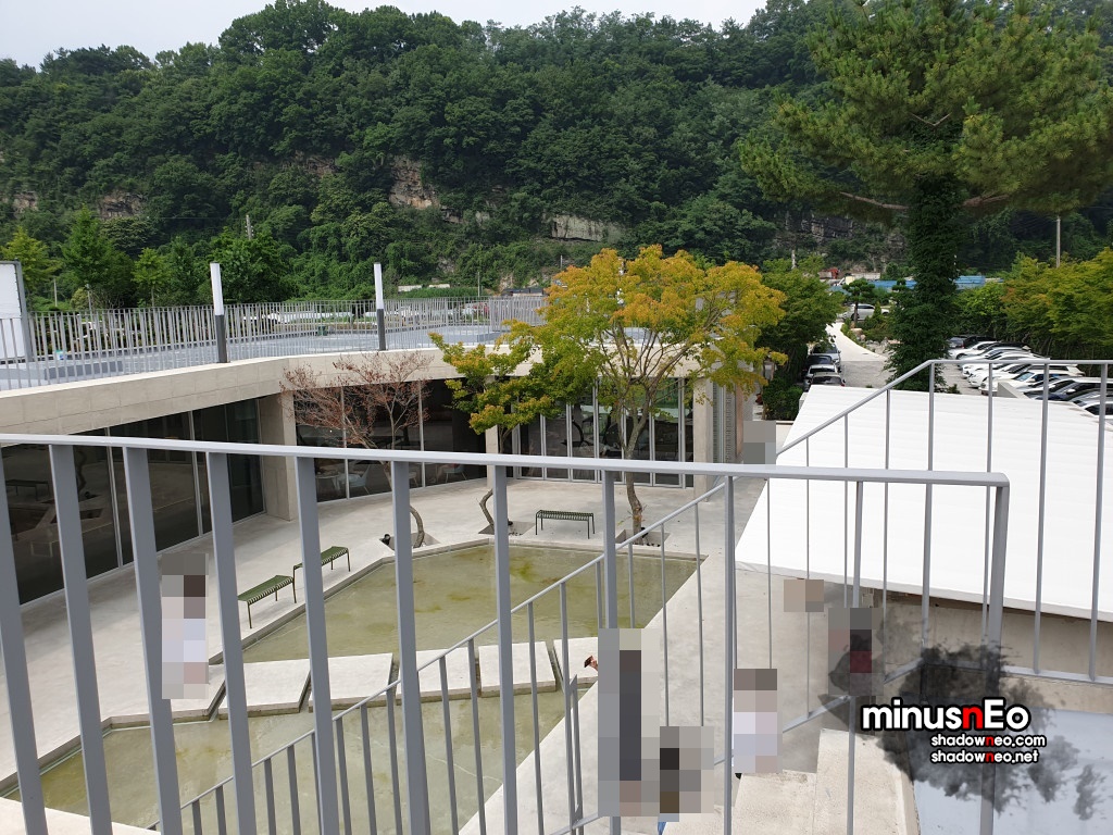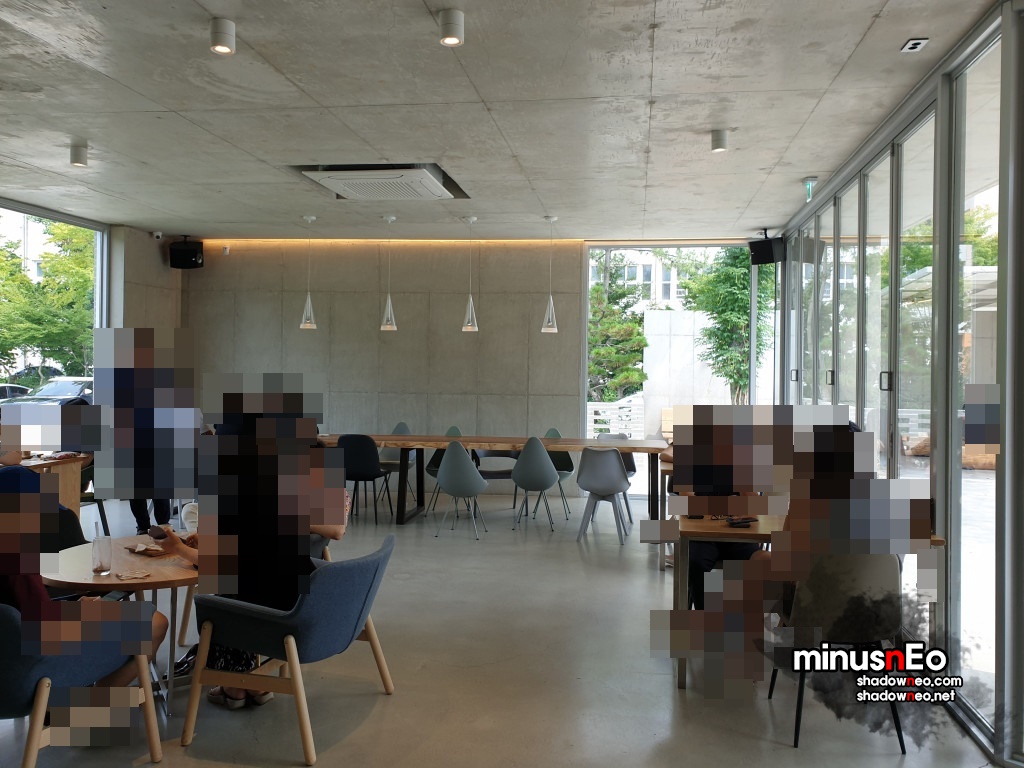 위에서보면 가운데는 비어있고 그것을 중심으로 둥그렇게 카페가 되어있는 형태