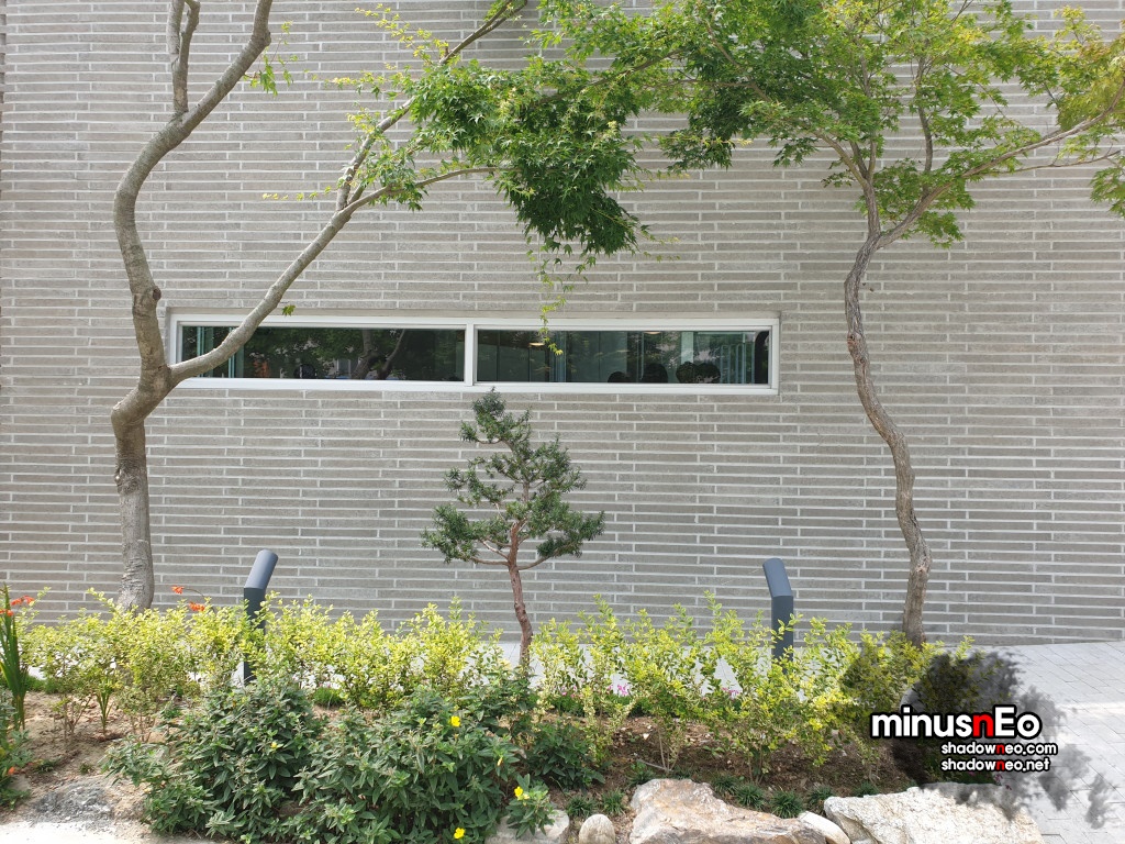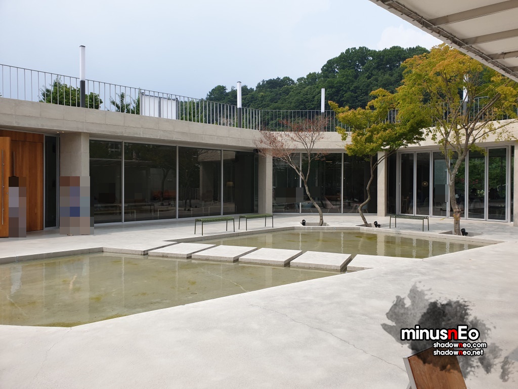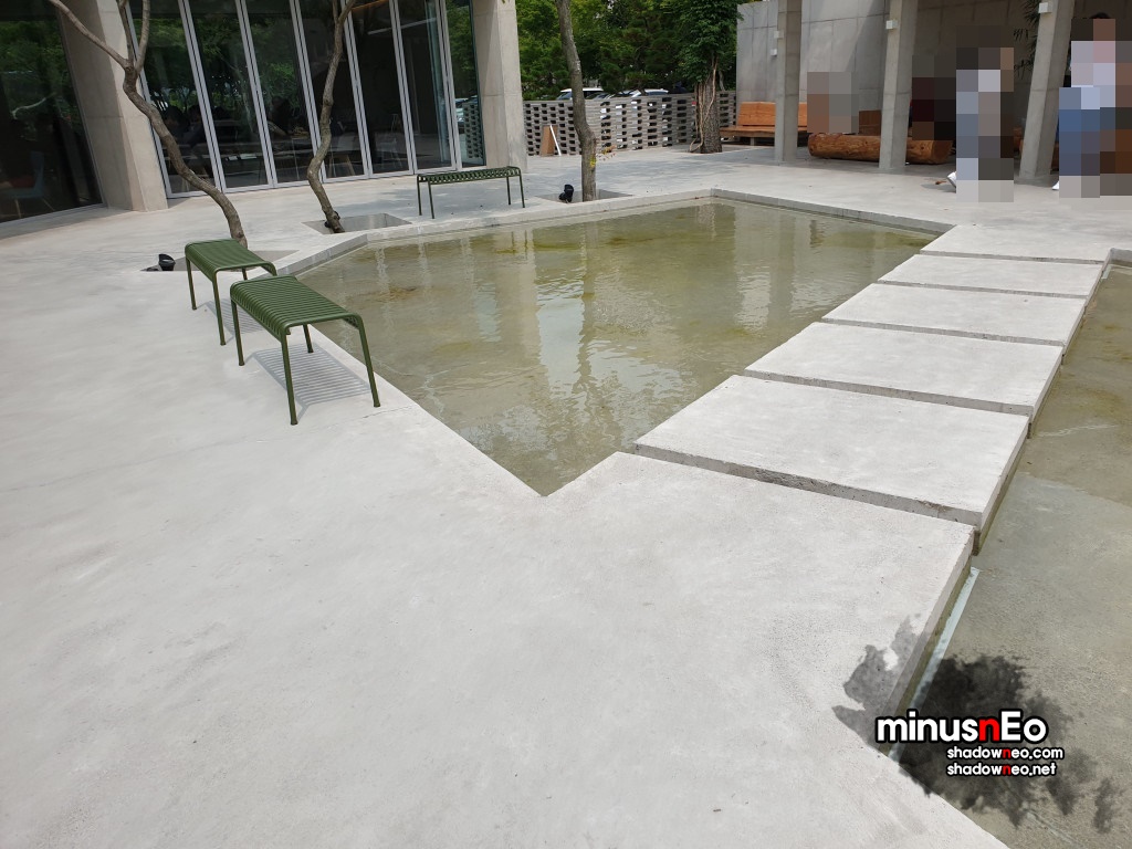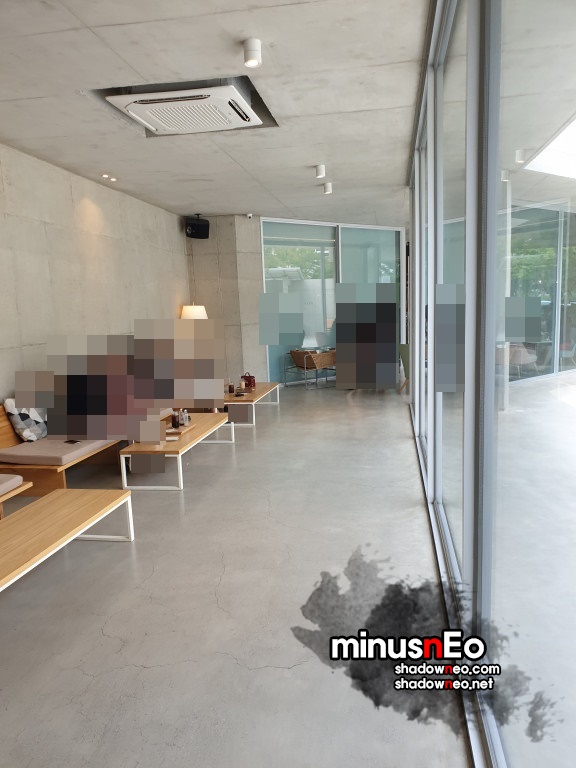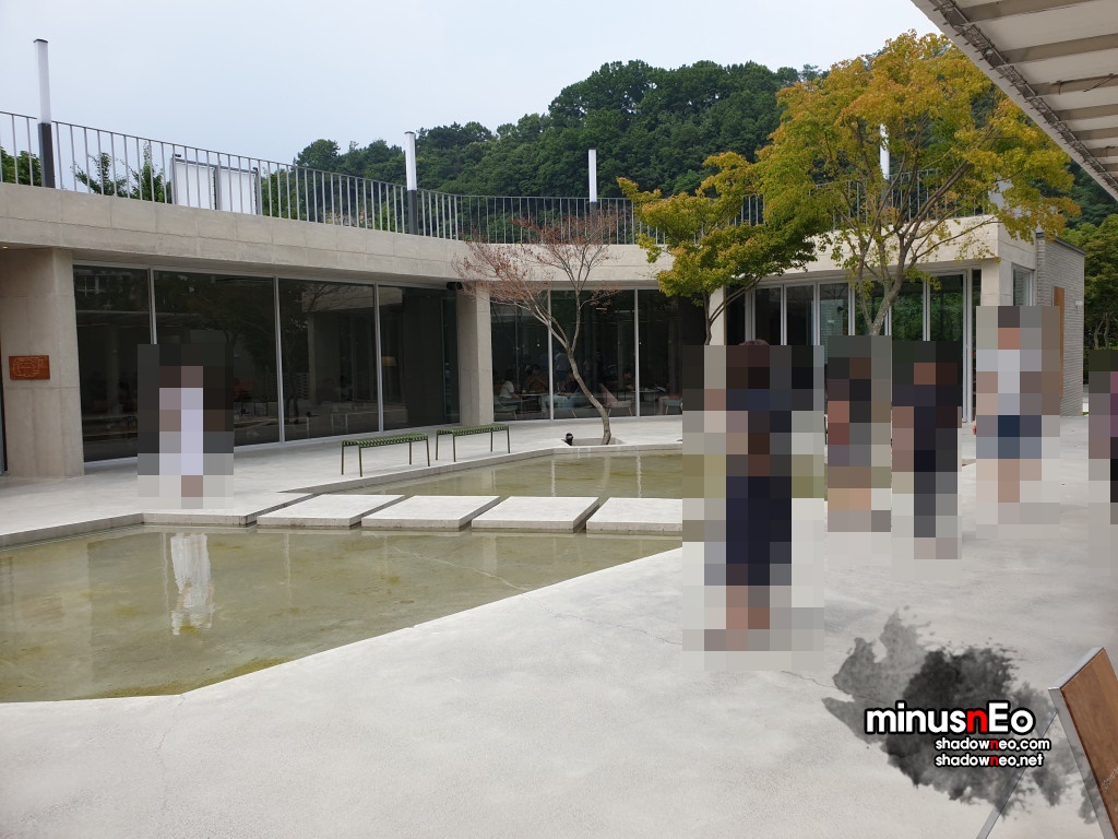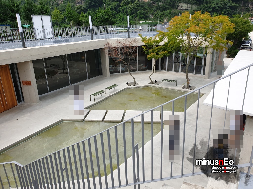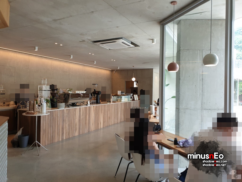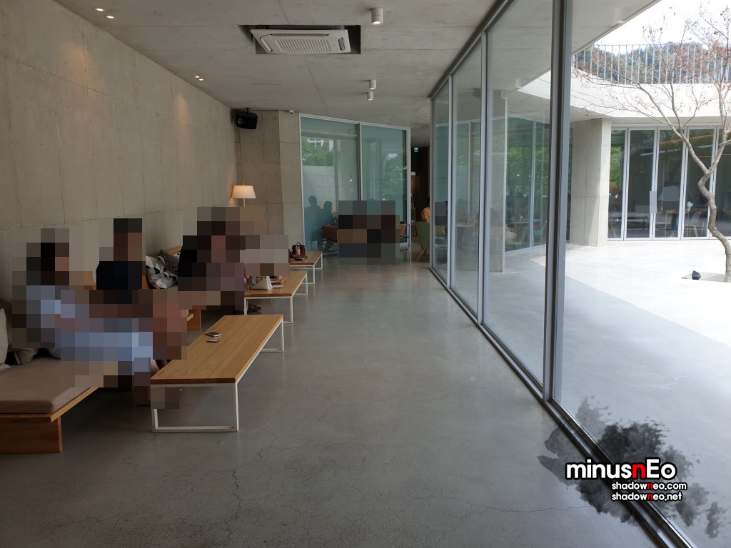 위에서보면 가운데는 비어있고 그것을 중심으로 둥그렇게 카페가 되어있는 형태