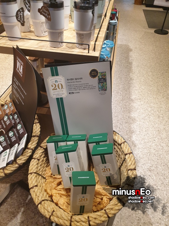 여러 커피와 텀블러가 있다.