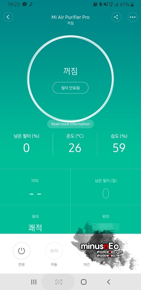 남은 필터(%) : 0 %