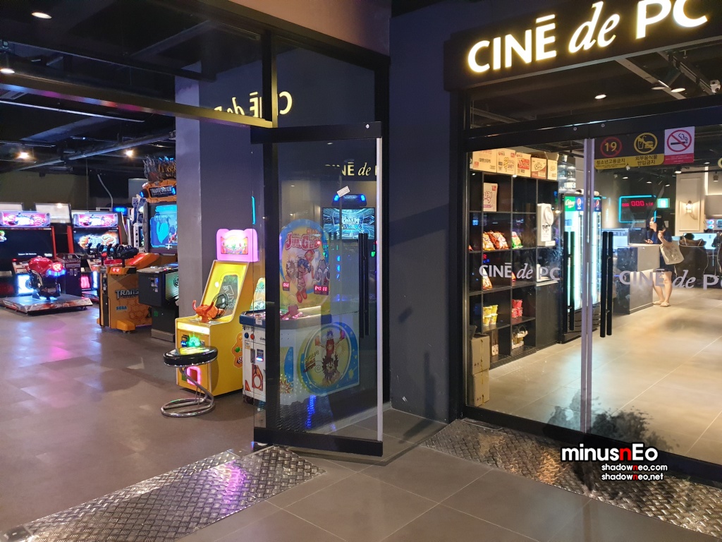 2층에 올라가면 'Cine de PC' 라는 PC방이 보이며 정면에 액션 오락실이 보인다.