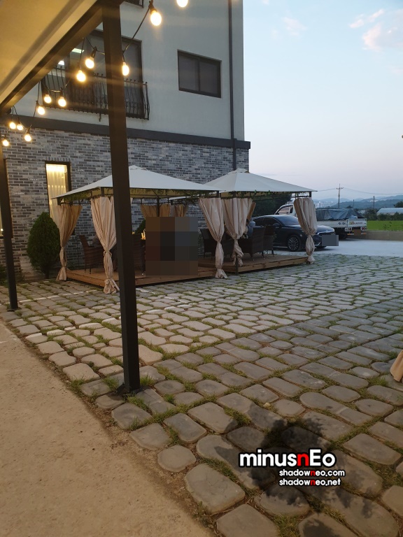 건물사이는 떨어져 있어 밖으로 나와 지나가야 한다. 가운데는 테라스식으로 벤치가 몇곳 있다.
