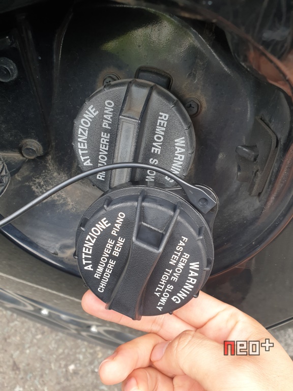 주유구캡과 분실방지용 고리가 있다.
