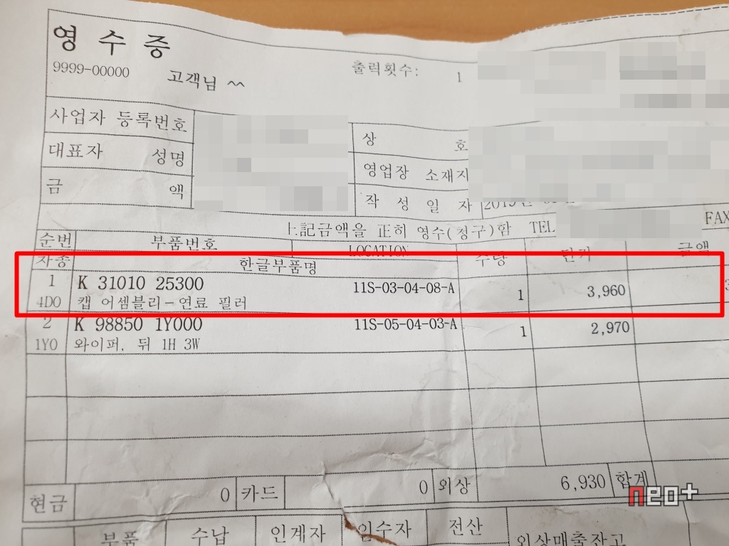 '분실방지용 고리'가 있는 현대 모비스 기아부품점에서 주유구 캡을 구매했다.