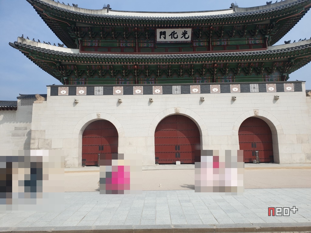 버스를 타고 청와대를 가는중 '광화문'을 볼수 있다.