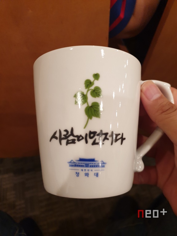 끝으로 기념품으로 받은 '사람이 먼저다' 머그컵이다.