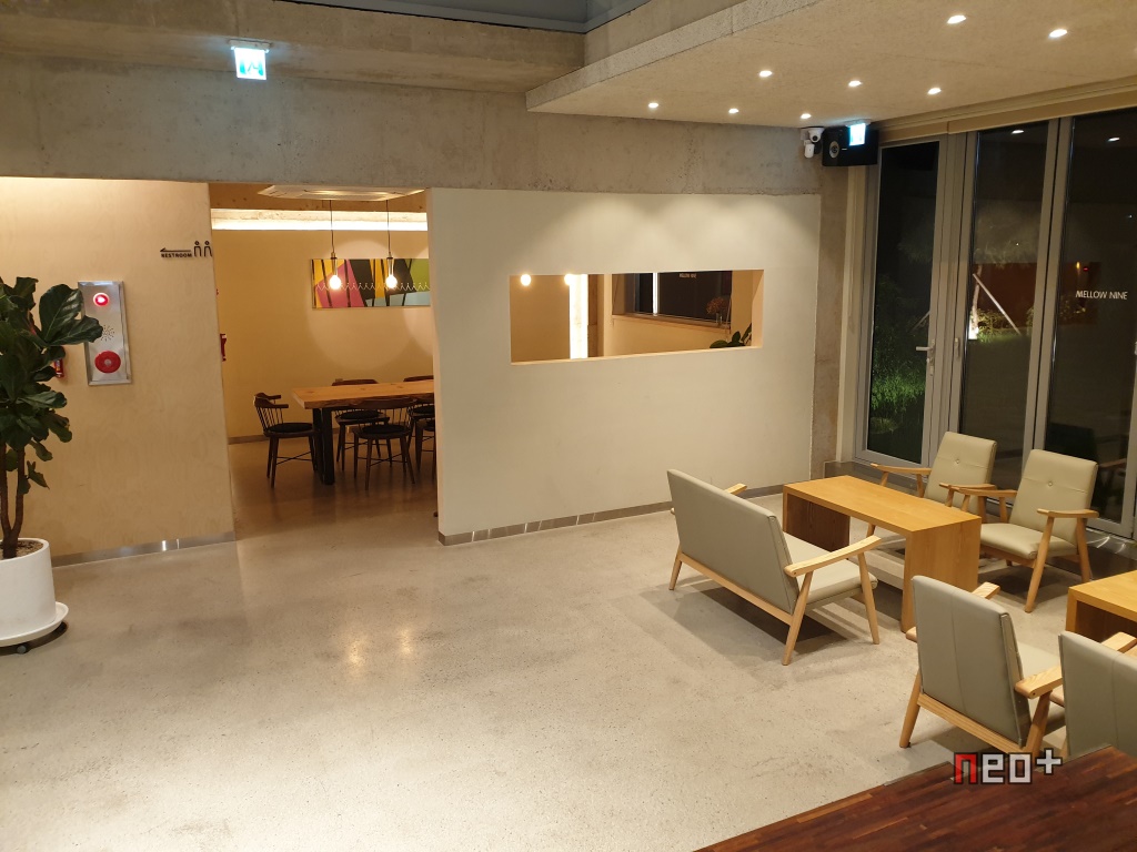 상호 : 멜로우 나인(MELLOW NINE) 위치 : 경남 진주시 금산면 금산로 144 (지번 : 경남 진주시 금산면 중천리 7) 경남 진주시 금산면에 있는 멜로우 나인(Mellow Nine) 커피숍을 갔다. 입구다. 카운터 밖으로..