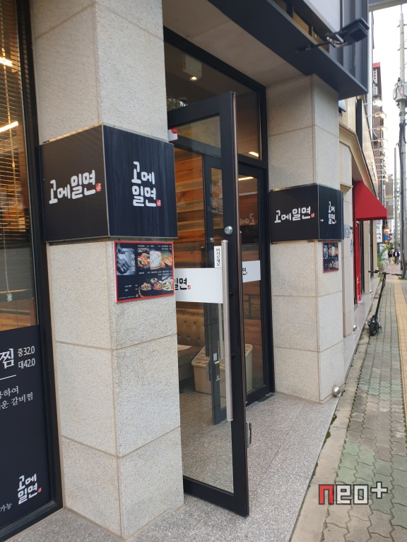 경남 진주시 가좌동에 있는 '고메밀면' 진주경상대점이다.