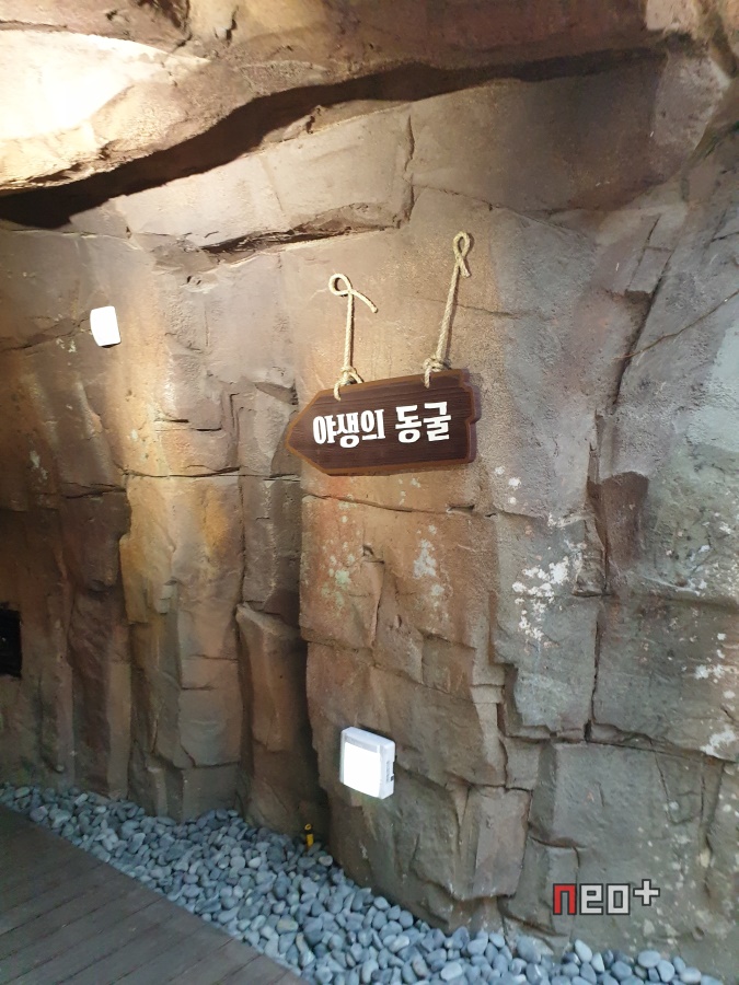 야생의 동굴, 내부는 프로젝트로 동물들 움직임과 소리를 표현했다.