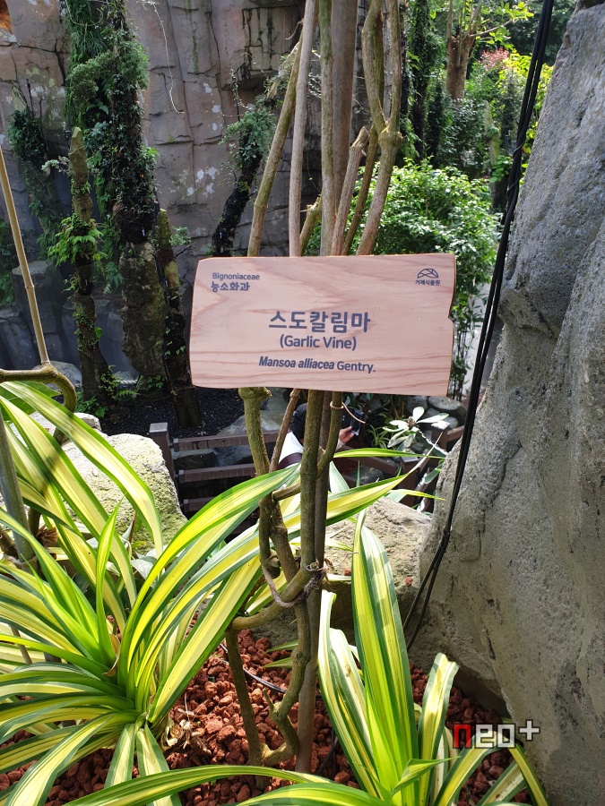 스도칼림마(Garlic Vine), 식물원 답게 식물들 명패가 있어 어떤 식물인지 알게 해놨다.