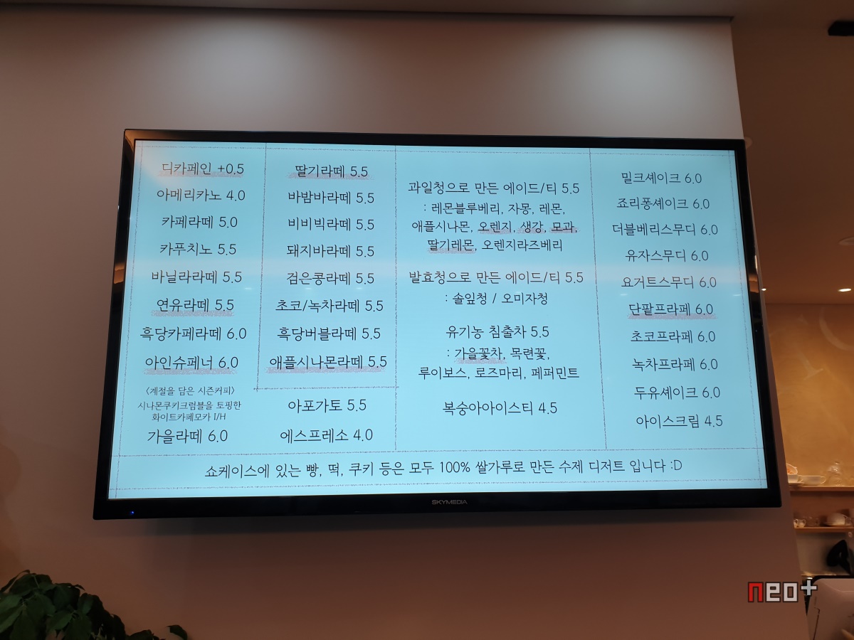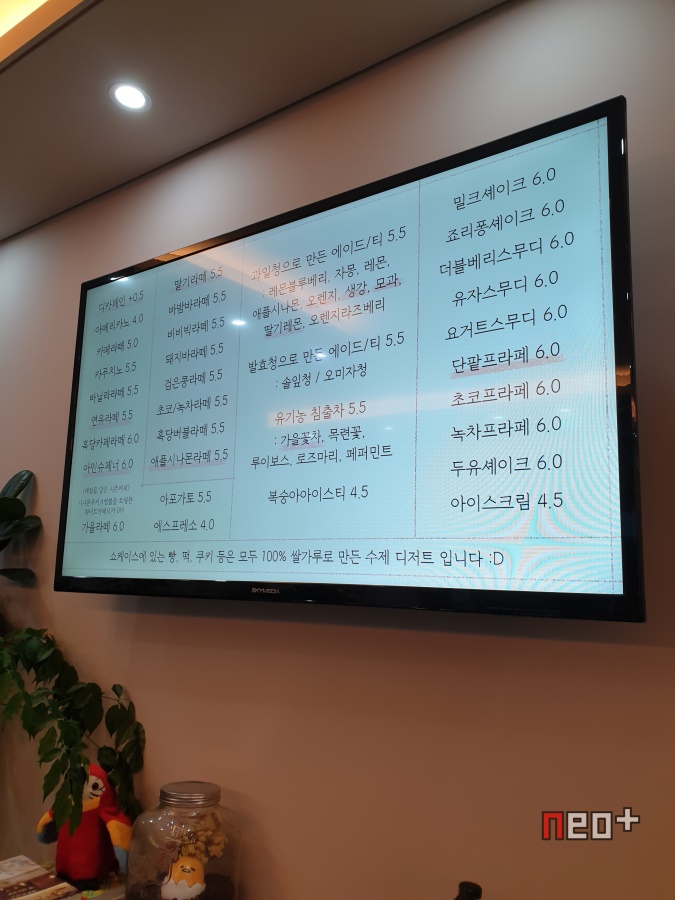 벽에 걸려 있는 메뉴판은 TV로 적어놨다.