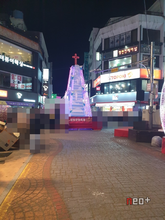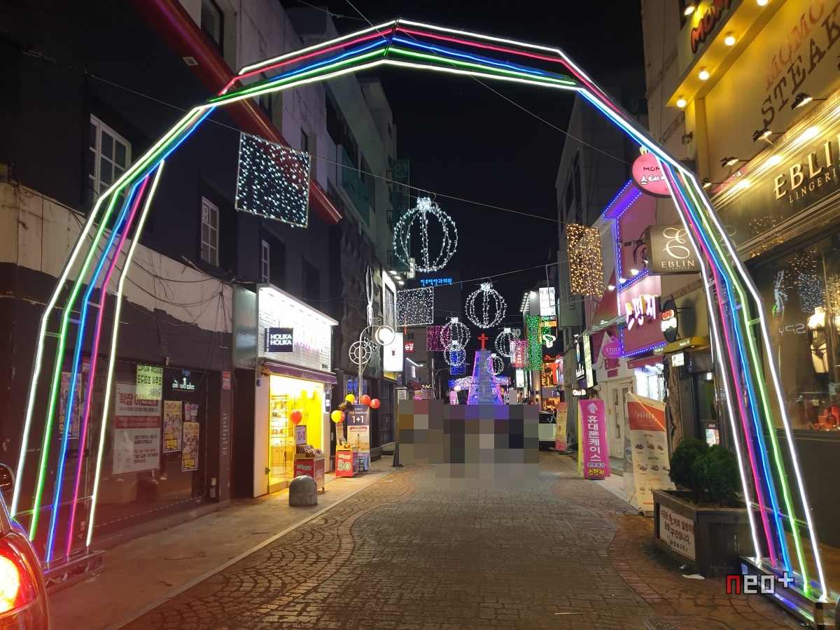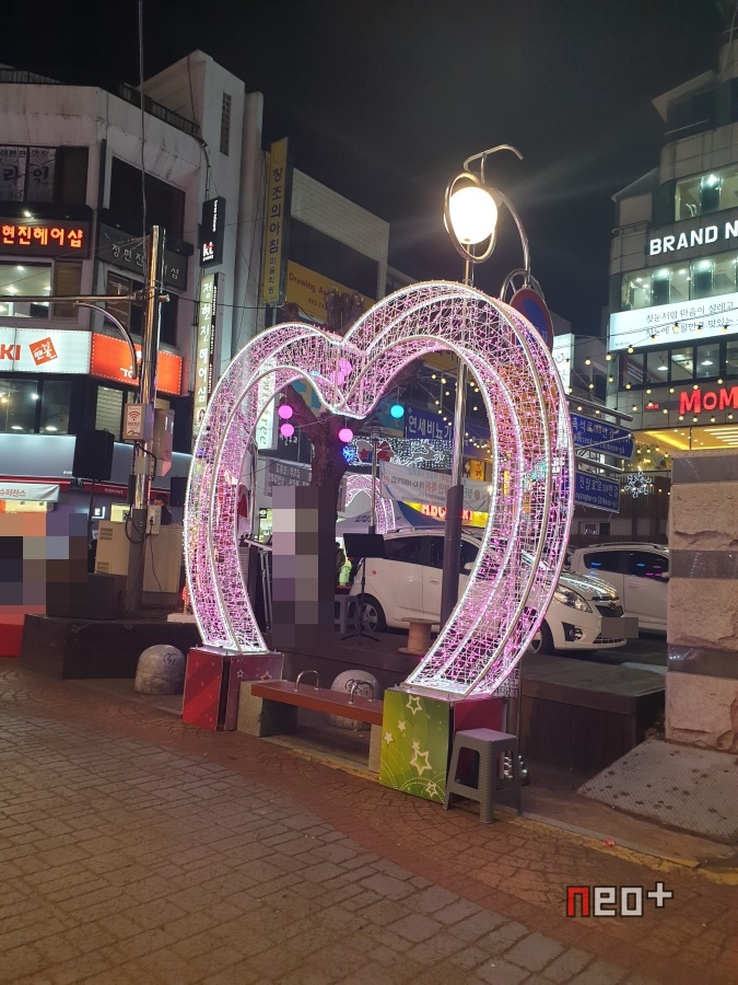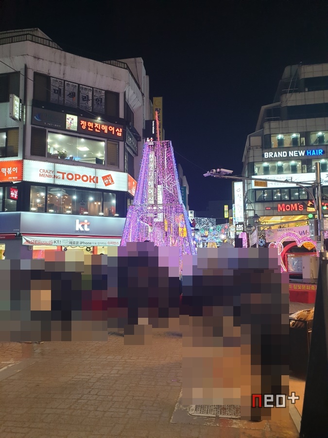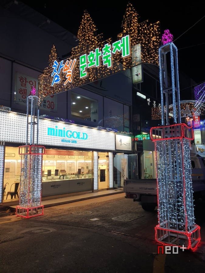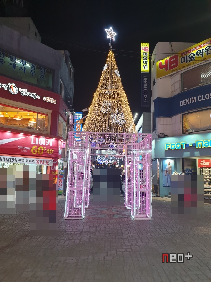 길거리 곳곳에 LED등이 걸려있다.