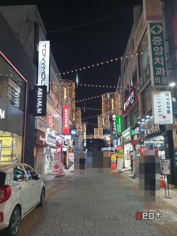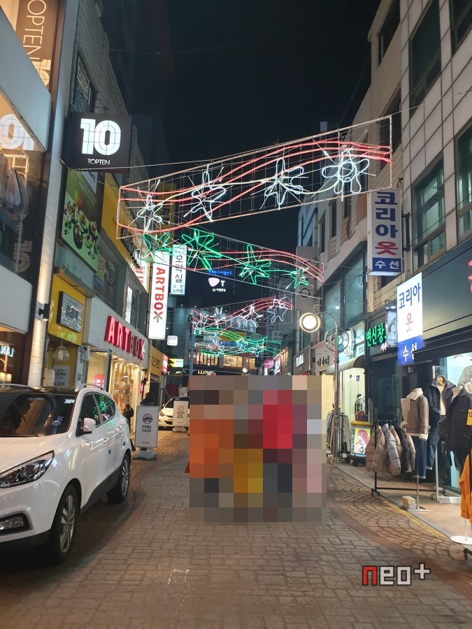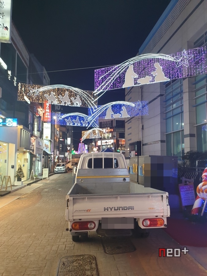 길거리 곳곳에 LED등이 걸려있다.