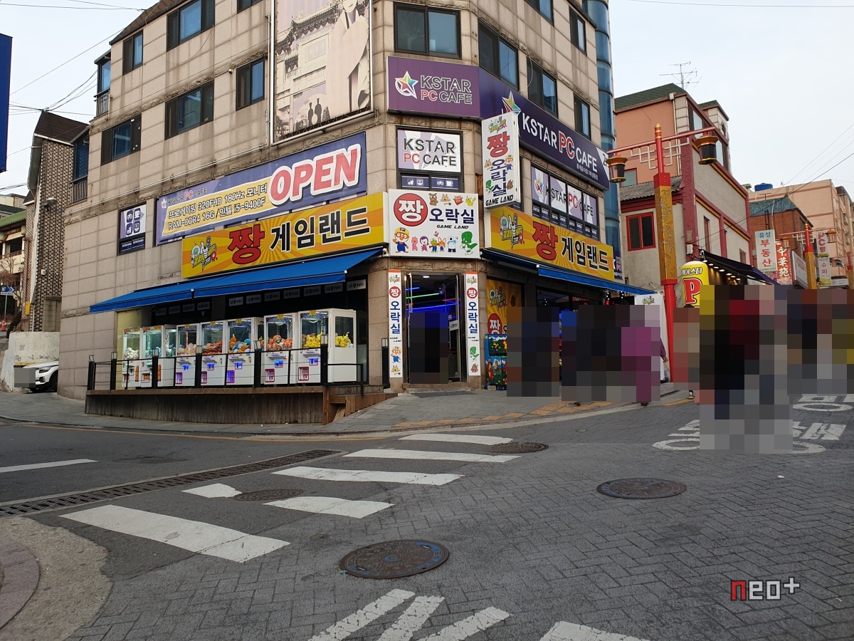 50m 정도 올라가면 왼쪽에 '짱게임랜드(짱오락실[ZZANG GAMELAND])'이 보인다.