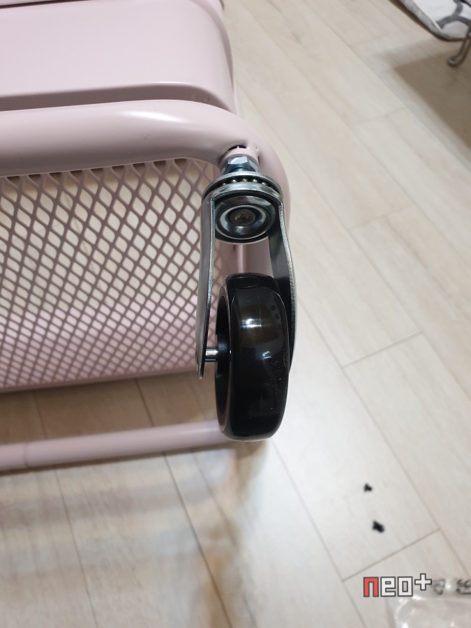 내부품목, 기둥이 될 뼈대와 바퀴, 바구니(?)가 3개 있다.