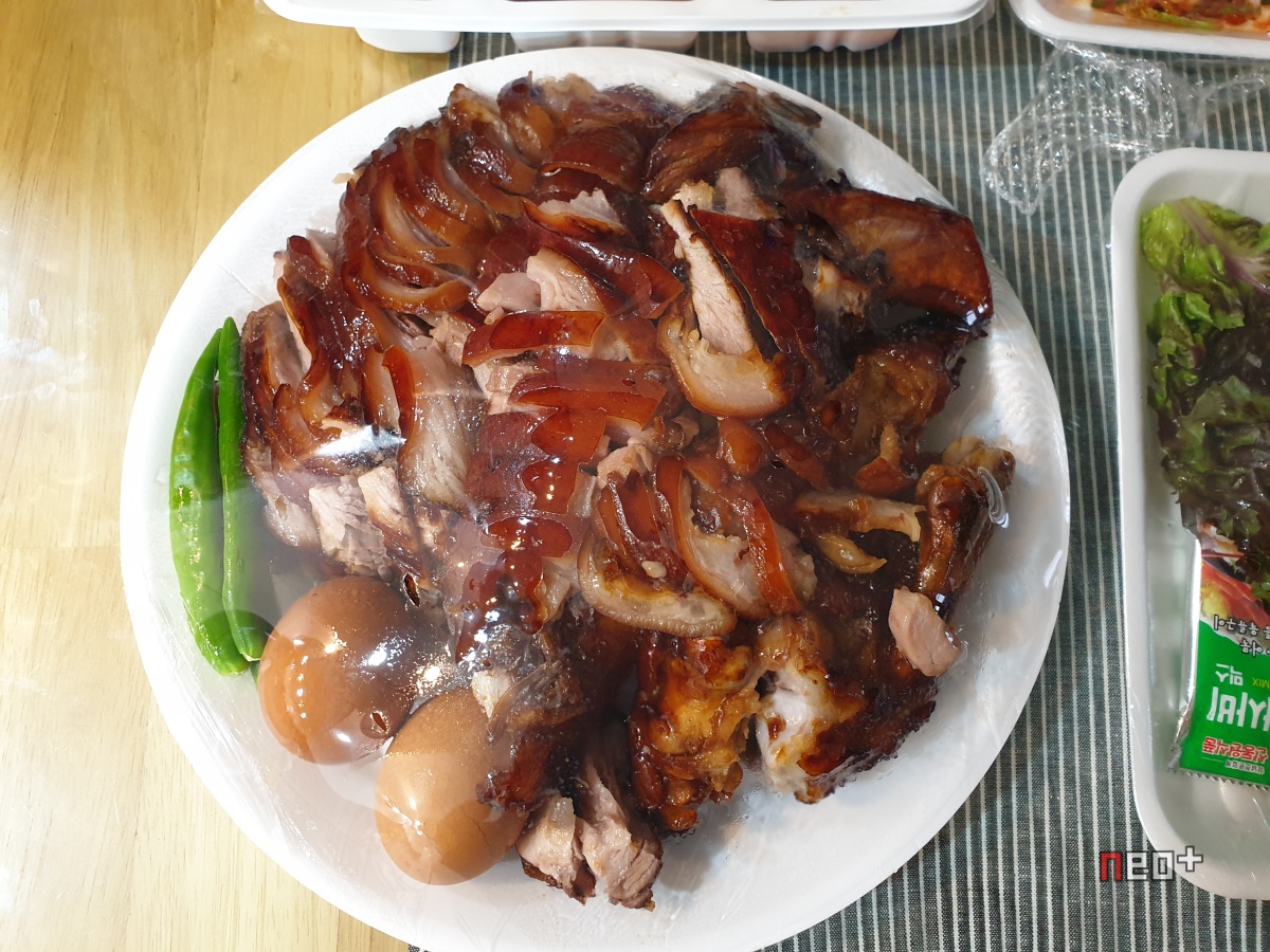 족발, 계란이 들어있다.