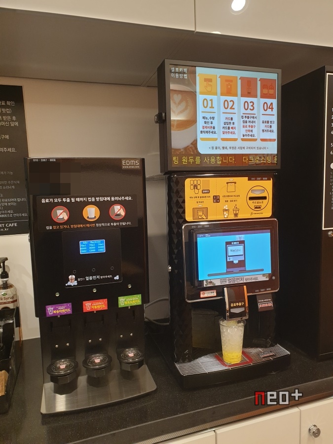 왼쪽이 에이드 자판기, 오른쪽이 커피류 자판기다.