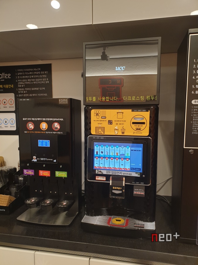 다른 무인카페처럼 자판기를 이용하여 판매한다.