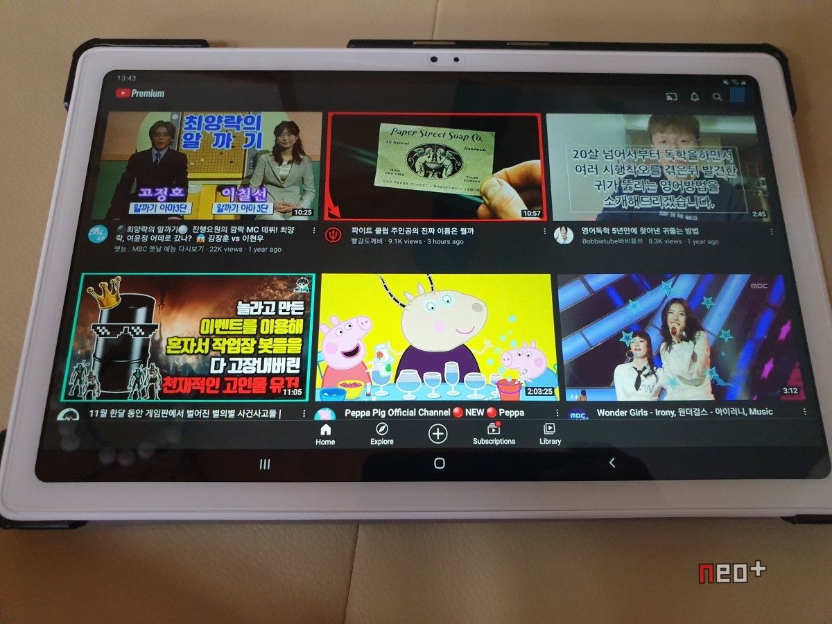 최근 본 태블릿과 다른게 카메라 모듈이 가로로 둘때 위에 있다.