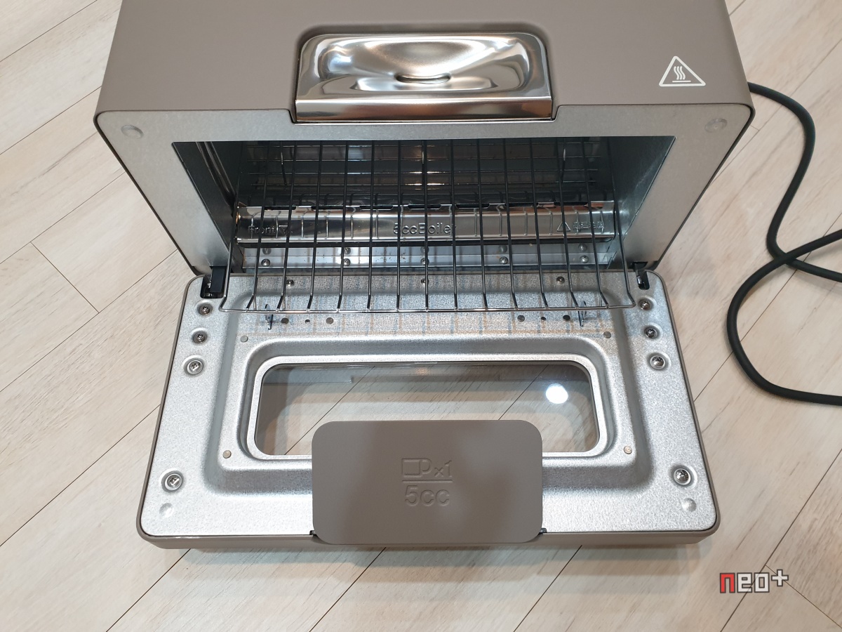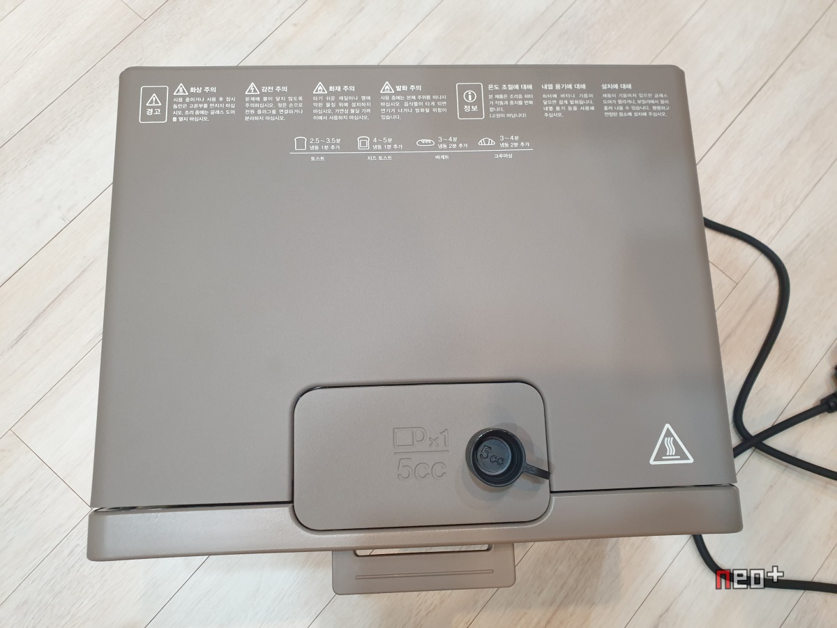 제품명처럼 스팀(STEAM) 증기를 이용하는 토스터기이므로 윗면에 물 5CC를 넣을수있는 공간이 있다.