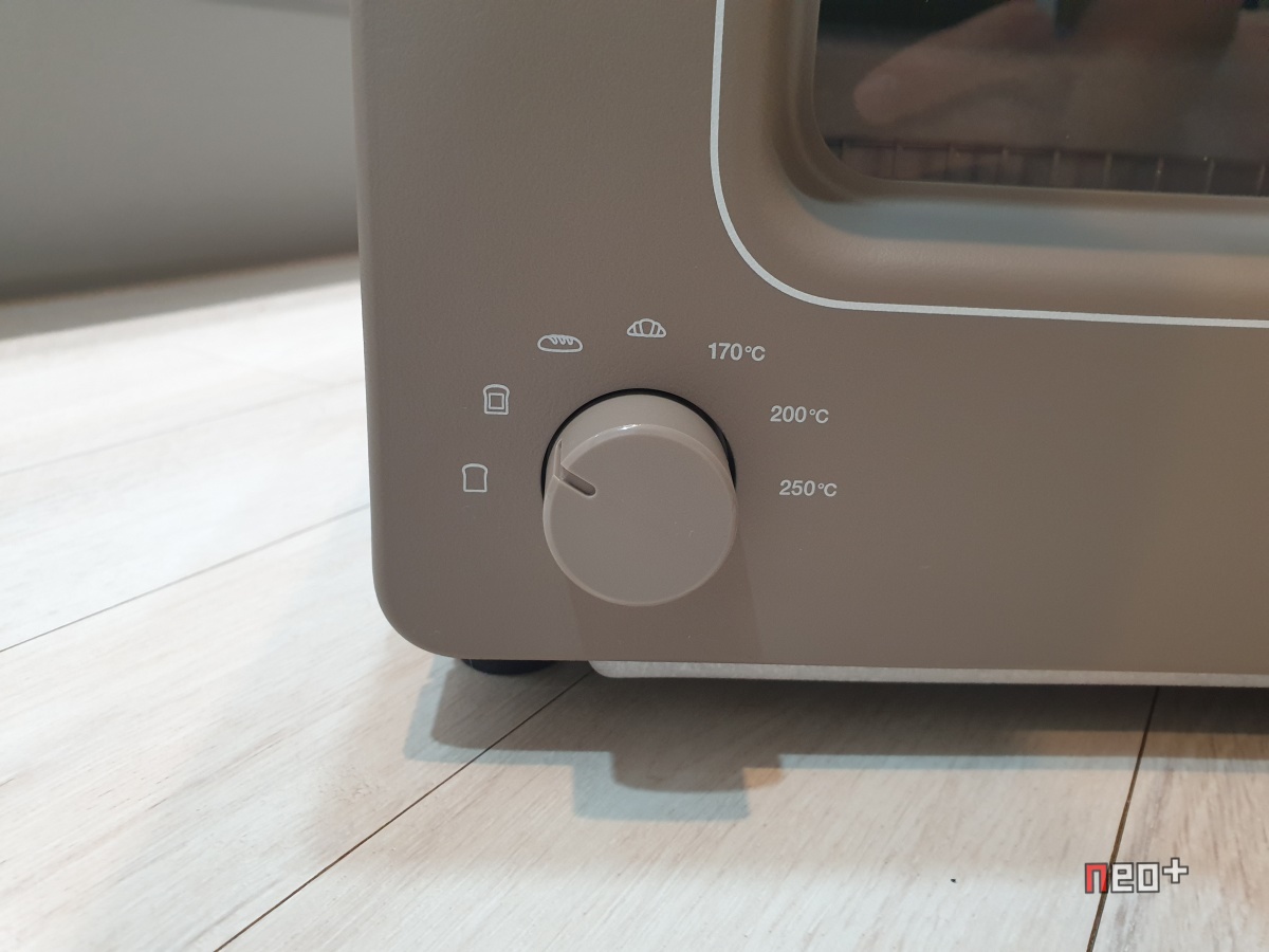 왼쪽에 조리 모드 다이얼(온도제어 다이얼)이 있고 오른쪽엔 시간 선택 다이얼이있다.