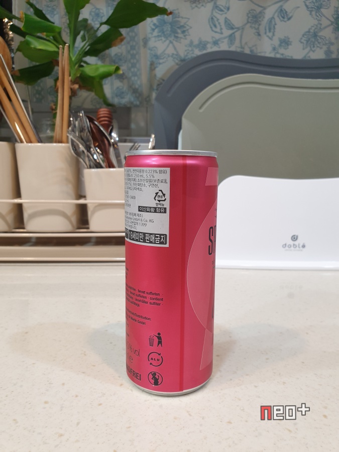원재료명 : 백포도주, 무수아황산, 소브산칼륨, 정제수, 설탕, 자몽주스농축액, 이산화탄소, 구연산, 천연향료(자몽향), 구연산삼나트륨, 자주색고구마색소, 당근농축주스, 카라멜색소, 히비스커스추출물(꽃)