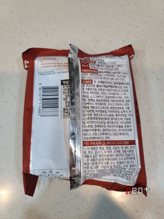 원료명 : 밀, 팜유, 변성전분, 활성소맥글루텐, 정제염, 식물성크림, 면류첨가알칼리제, 구아검, 비타민B2, 구연산, 녹차풍미유