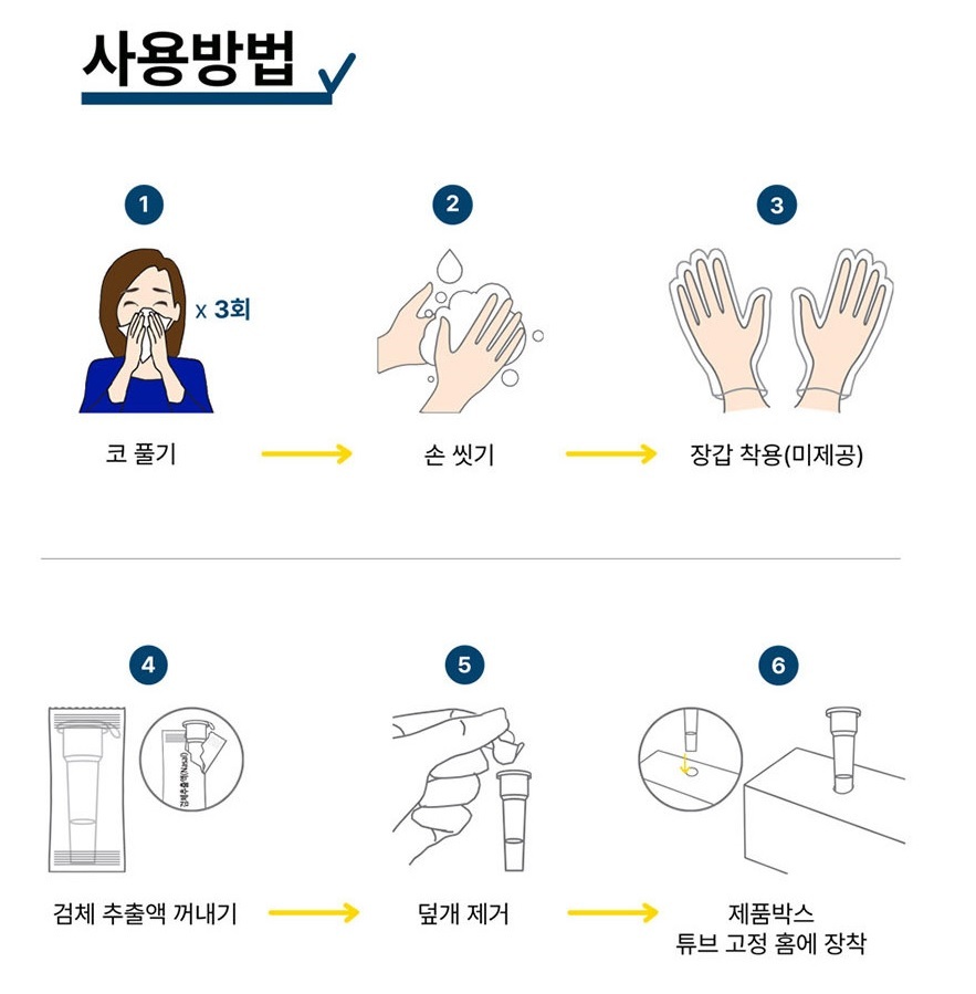 5. 테스트기에 검체 3방울정도 떨어트리면 15~30분후에 결과가 나온다.