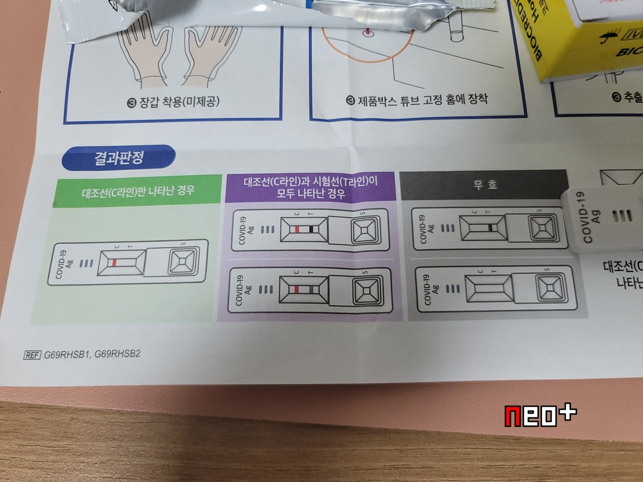 S부분에 검체를 3방울 정도 넣으면 테스트용지로 스며들어 결과가 나오는 방식이다.