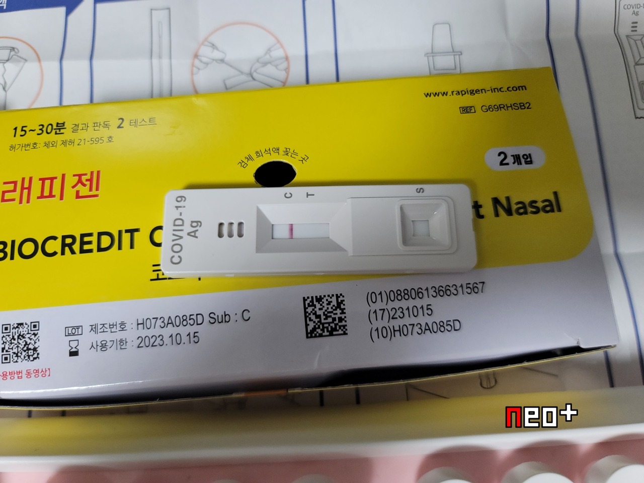 | [검사] 코로나-19 신속항원검사 자가진단키트 사용후기(래피젠)[RAPIGEN BIOCREDIT COVID-19 AG HOME TEST NASAL] (0) | 2022.02.09 |