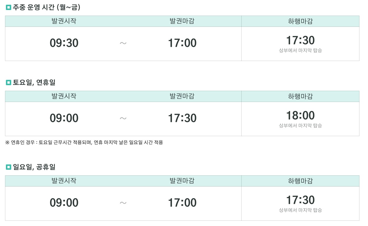 케이블카 탑승안내