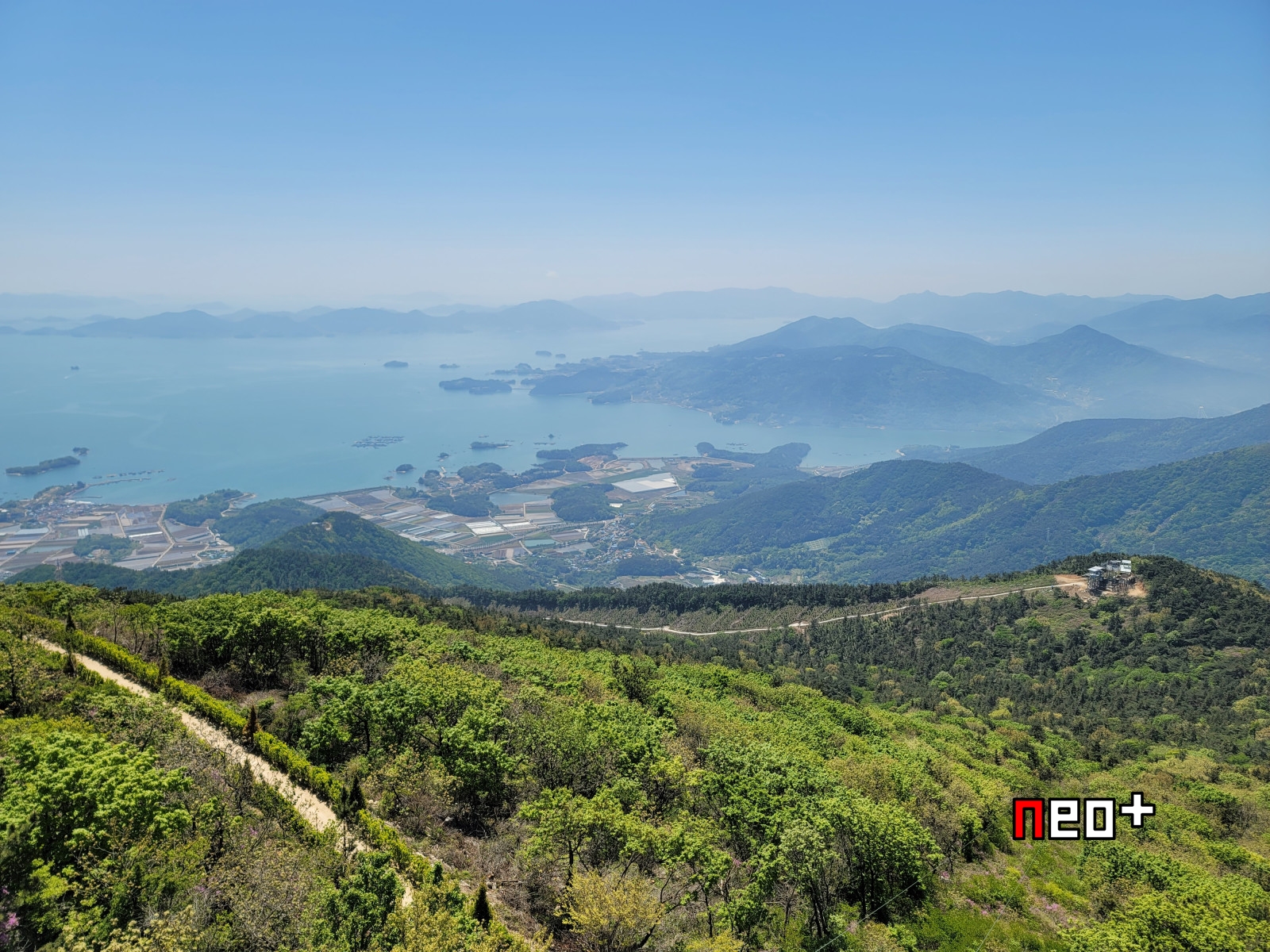 멀리 남해와 화력발전소가 보인다.