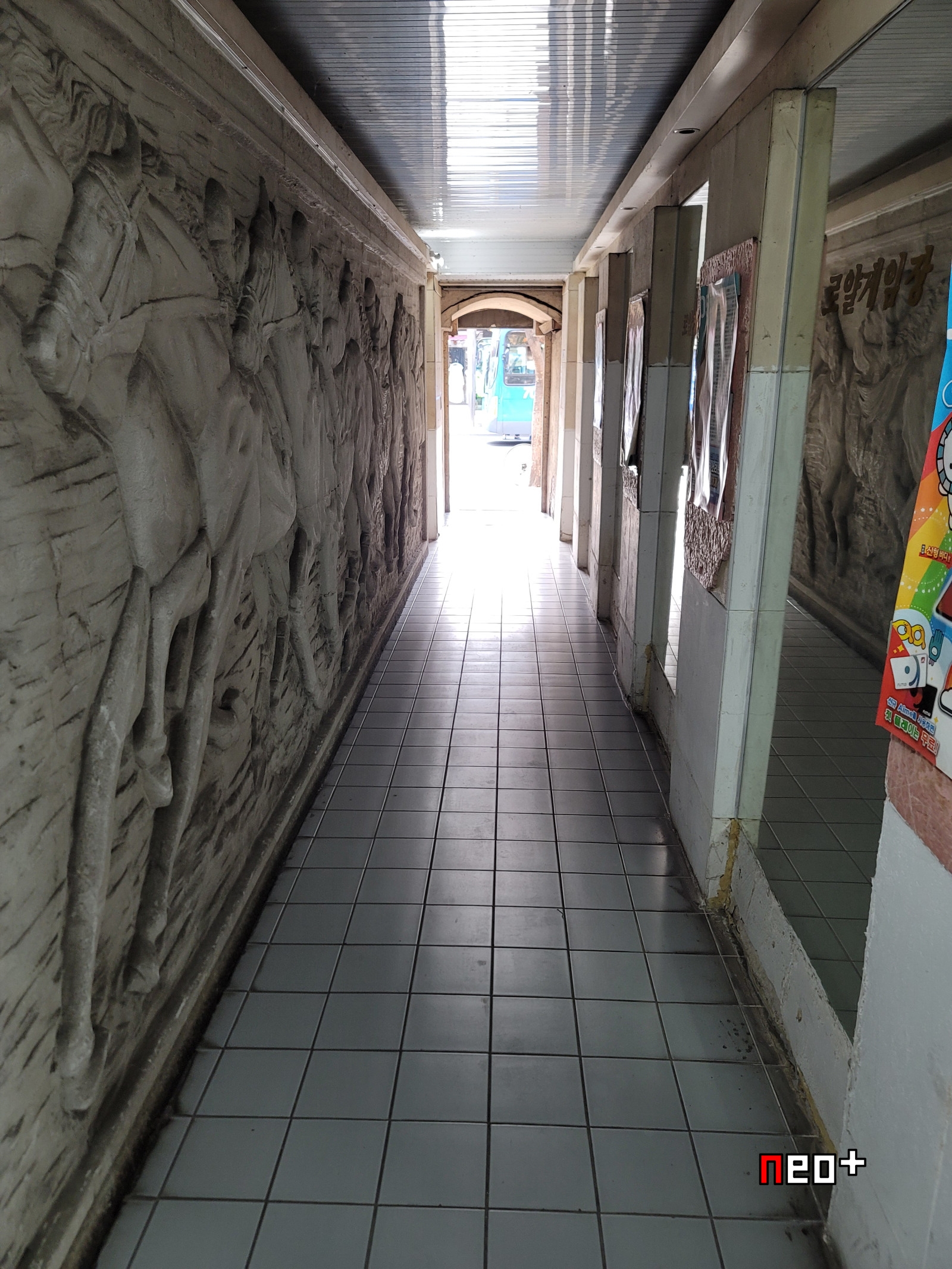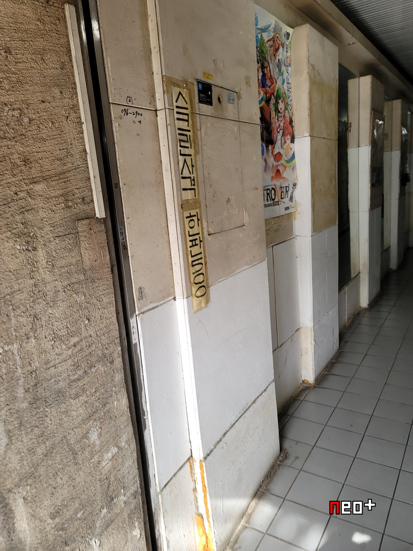 통로에 붙어 있는 포스터