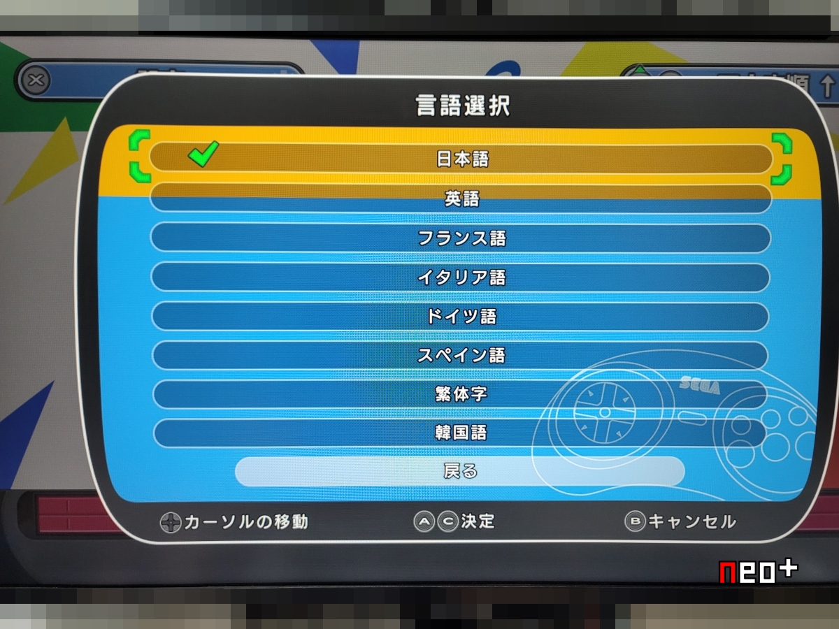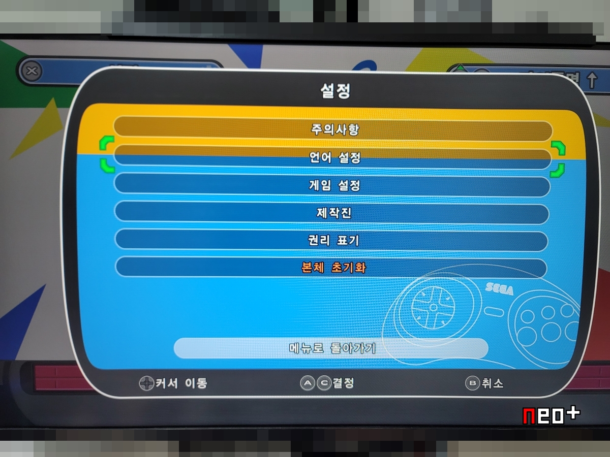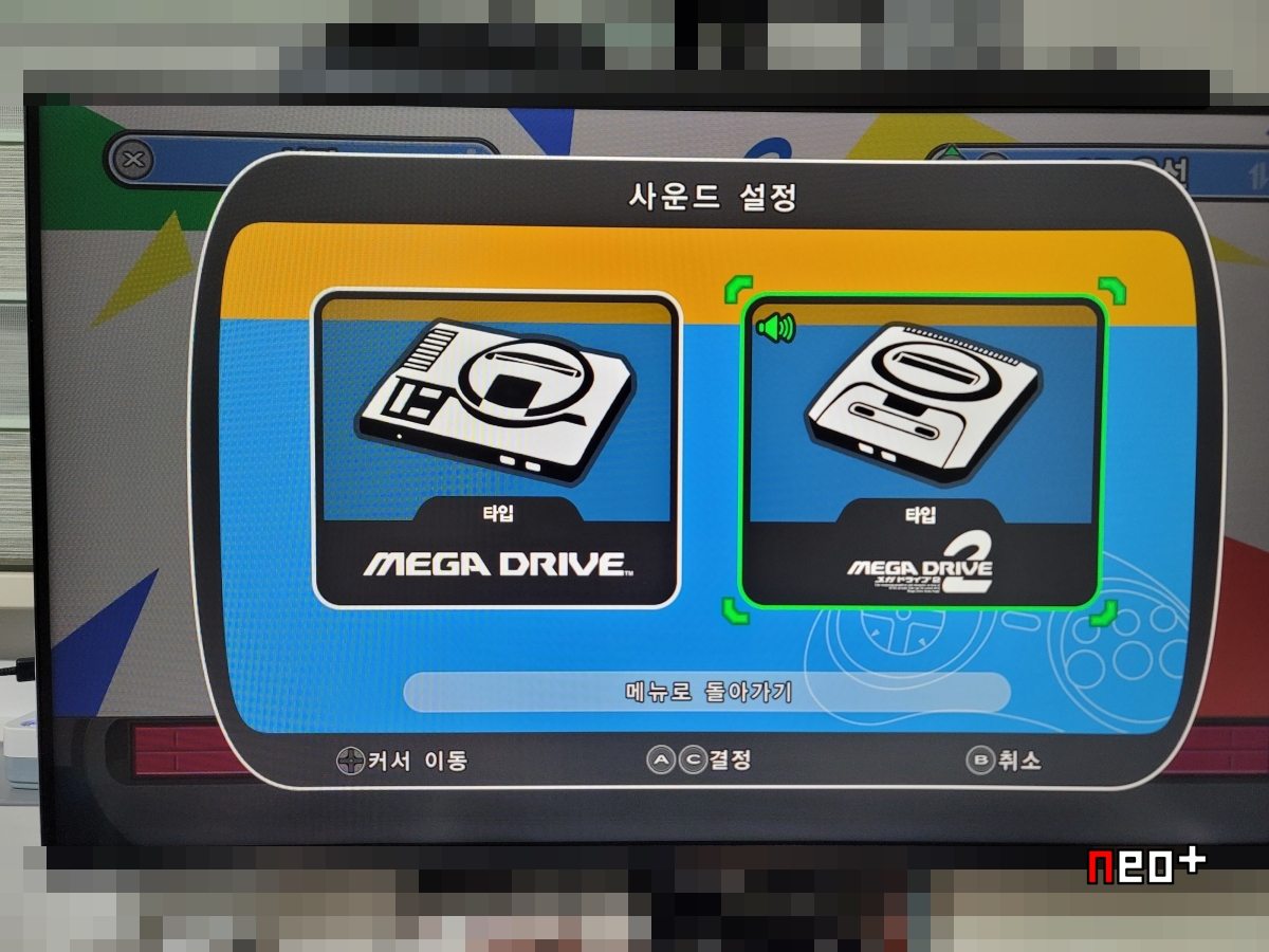 이 설정에 따라 시스템이 메가드라이브 1, 2로 돌아간다.