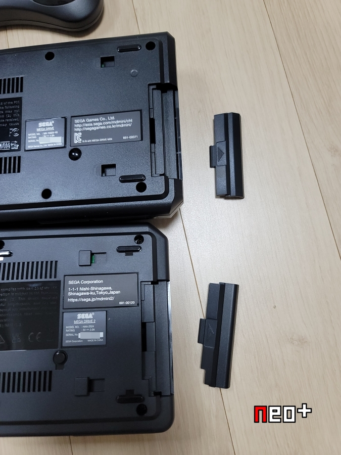 미니1, 미니2 둘다 오리지널판에서 메가CD와 연결하는 확장슬롯 기믹을 구현해놨다.