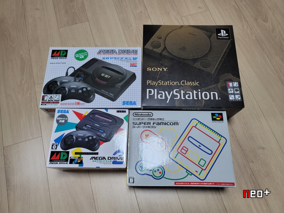 왼쪽위부터 시계방향으로 미니1, PS1 클래식, 슈패콤 미니, 미니2