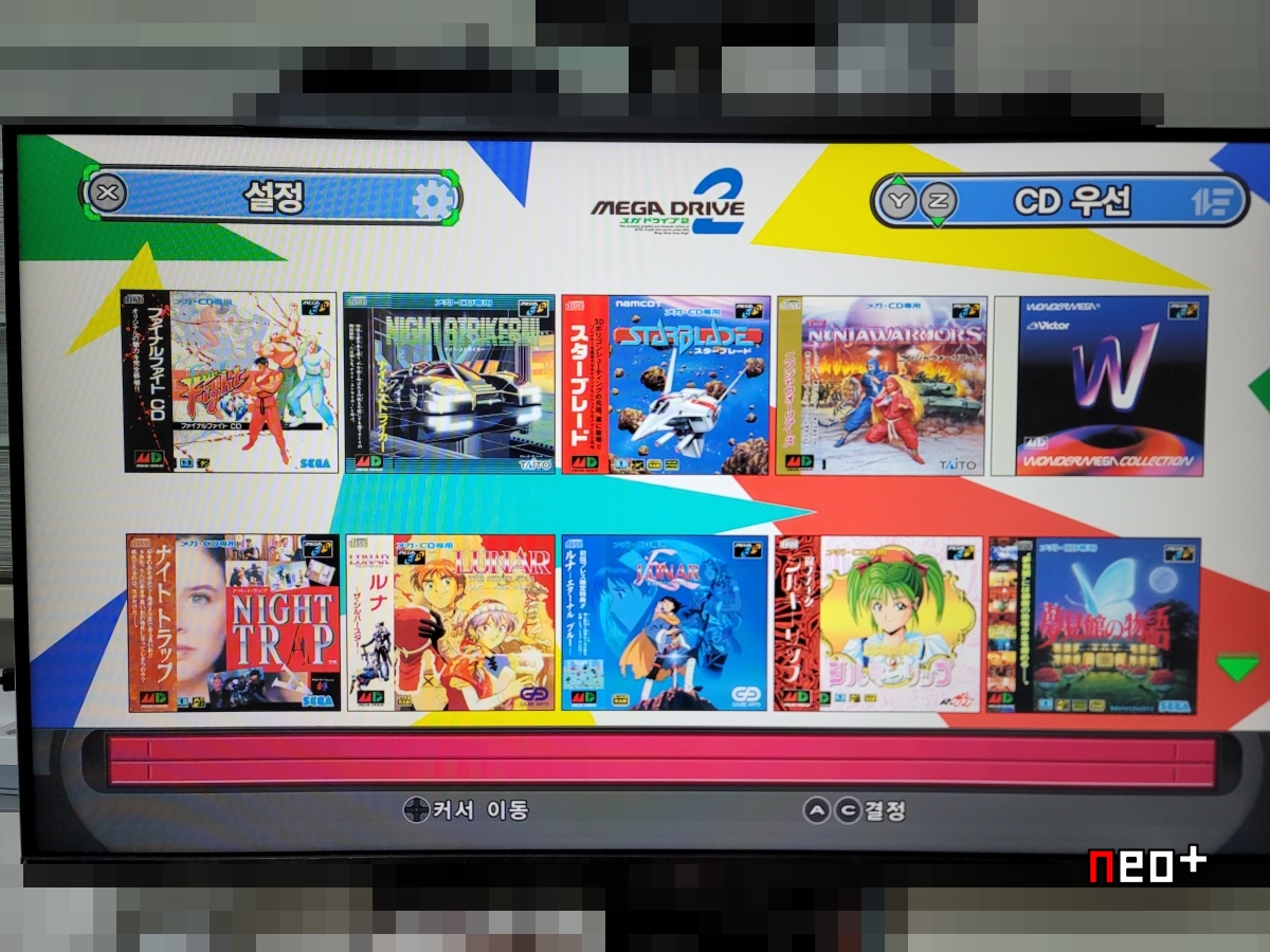 미니1과 다르게 메가드라이브 CD 게임이 수록되어 있다.
