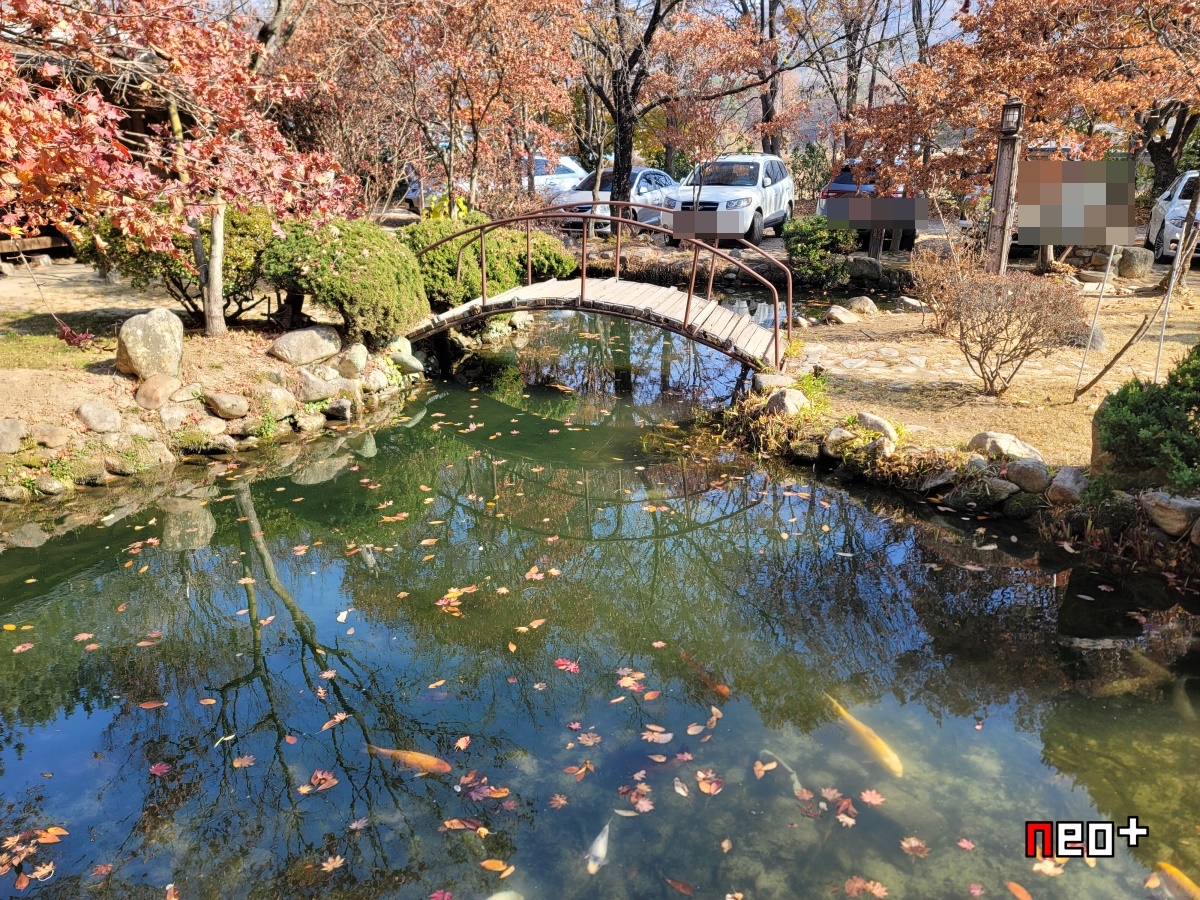 내부가 마당이 있고 연못이 있고 음식점이라기 보단 공원이나 사원 같은 느낌이다.