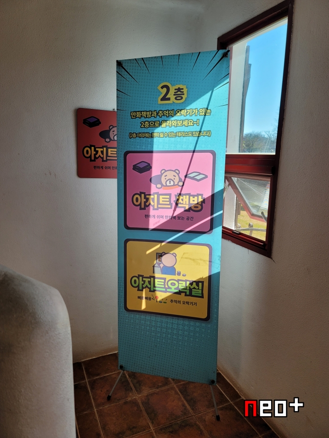제주도 제주시 조천읍에 있는 에코랜드내에 '피크닉가든(PICNIC GARDEN)역' 2층에 있는 '아지트오락실'이다.