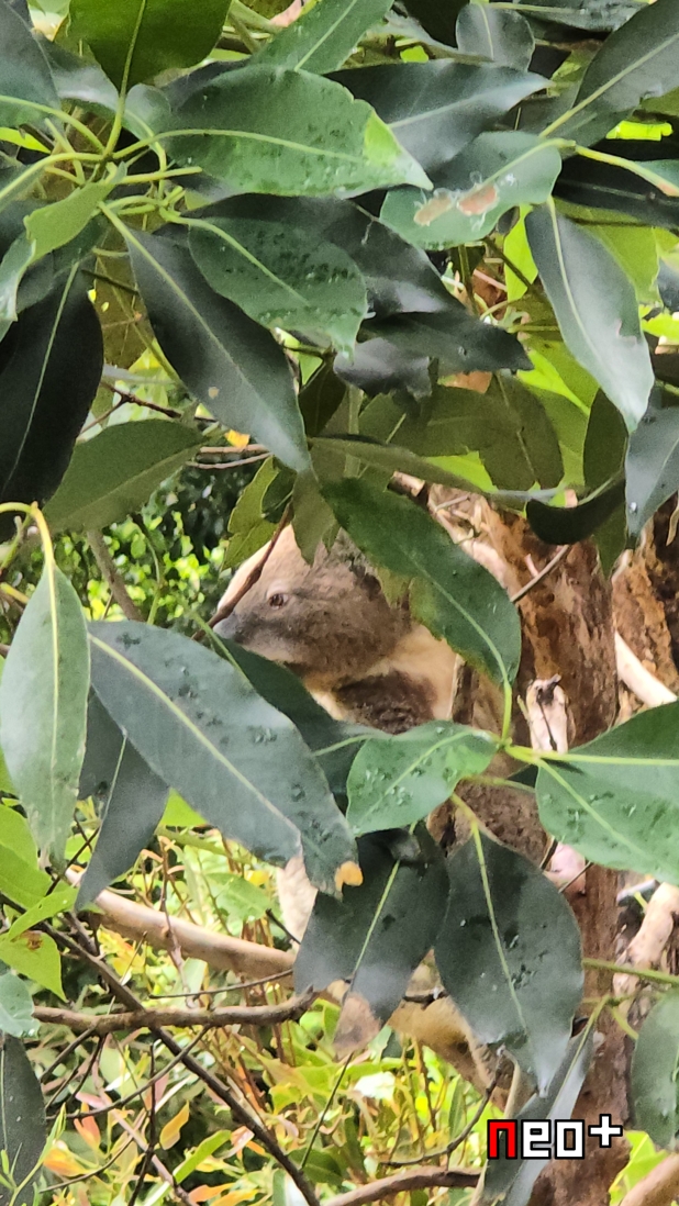 숙소밖 나무에 코알라가 매달려 있다.