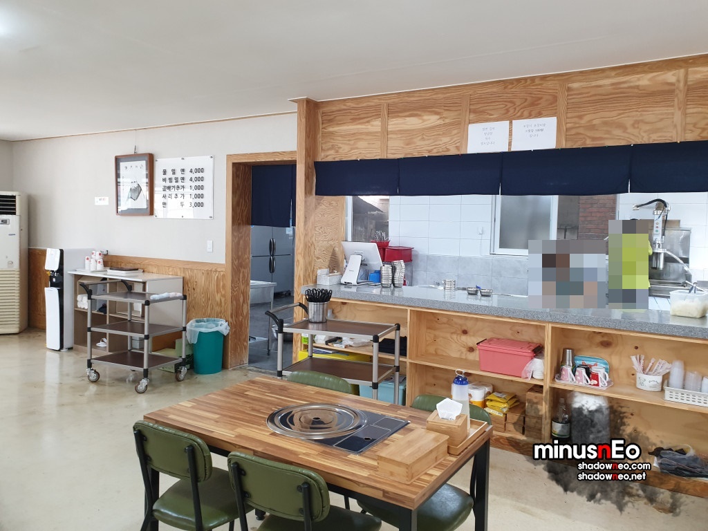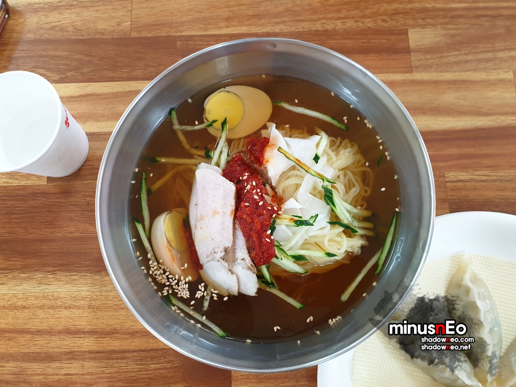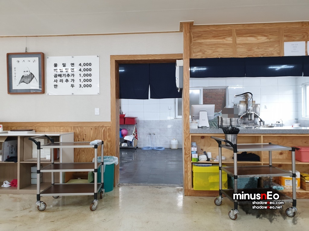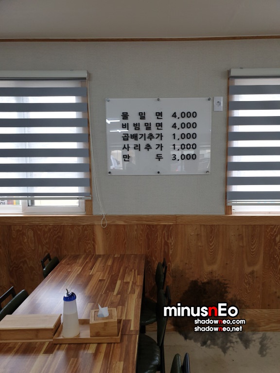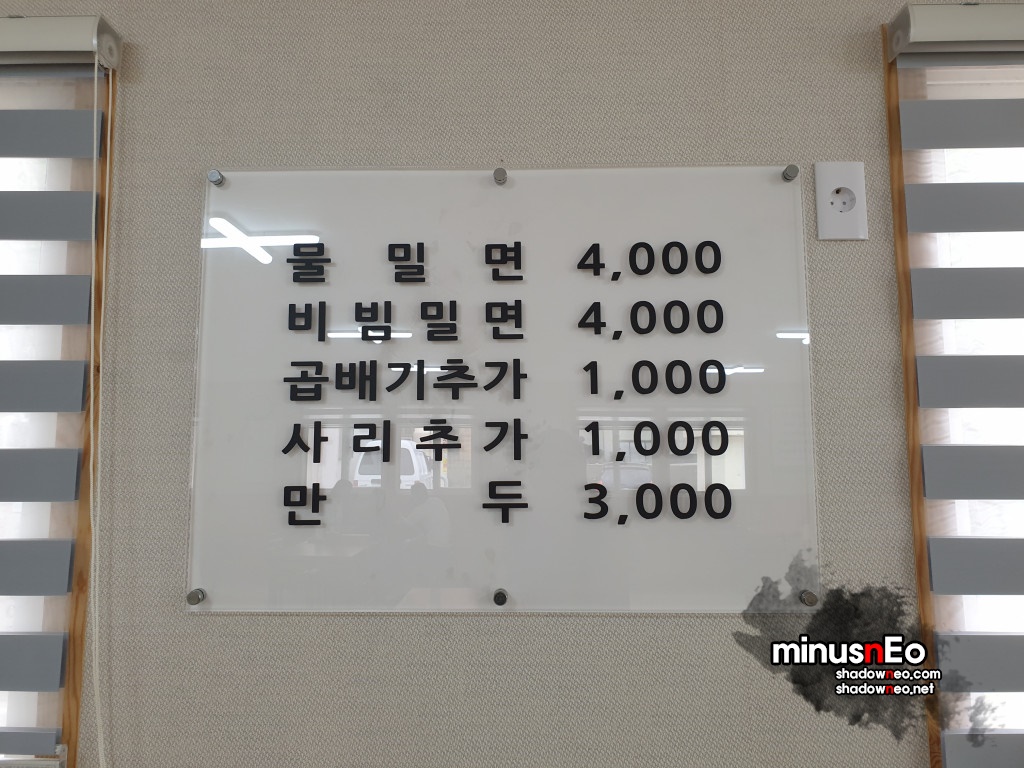 메뉴는 물밀면, 비빔밀면, 만두가 있다.