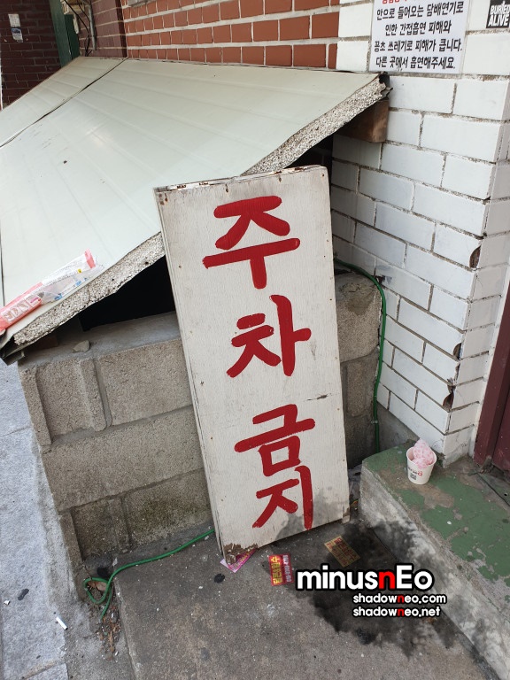주차금지 표지판조차 과거 유행하던 손으로 쓴 표지판이다.
