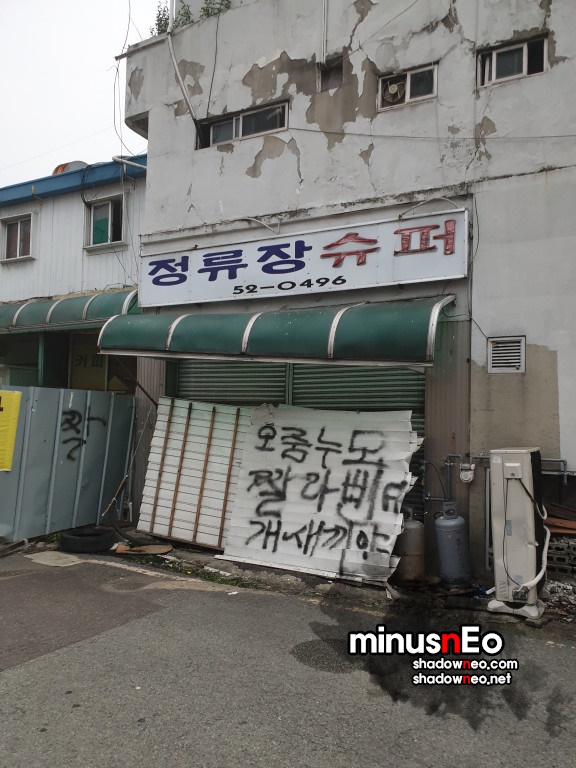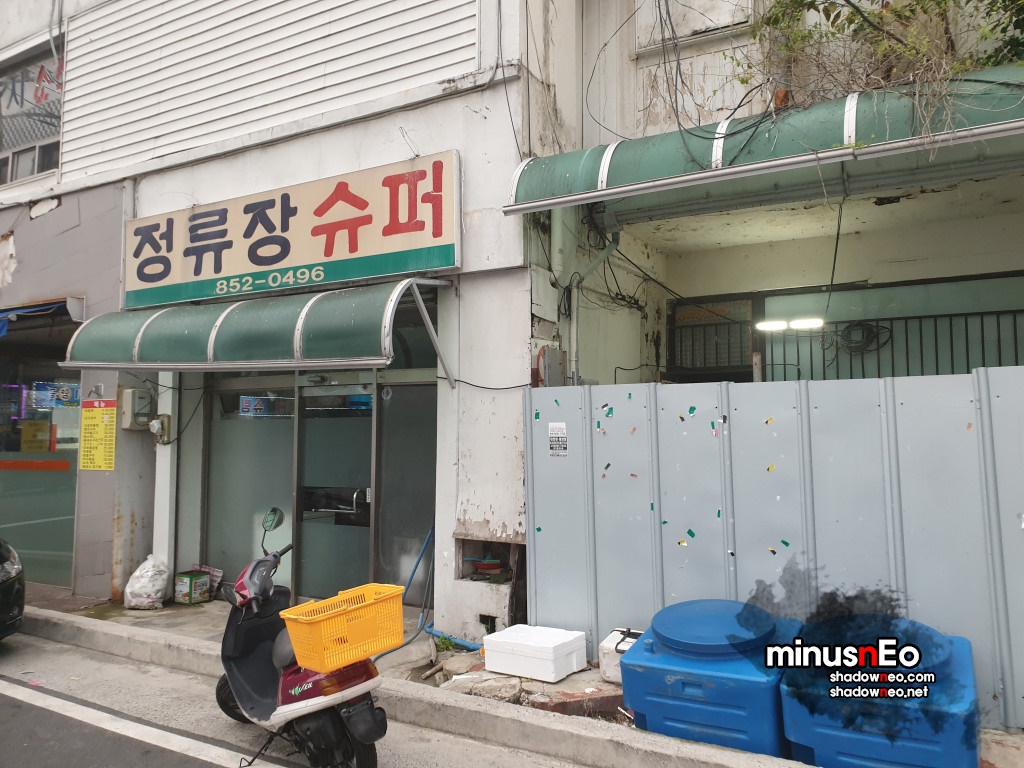 '정류장슈퍼'로 불이 켜져있다. 영업을 하는중???