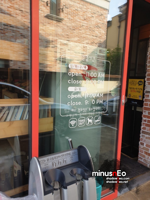 영업시간은 11시부터 21시(밤 9시)까지 이며 중간에 브레이크 타임(15시30분~17시)이 있다.