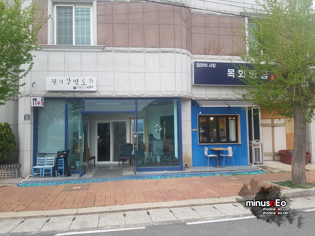 '원지 강변로55'가 말그대로 간판이고 상호다.