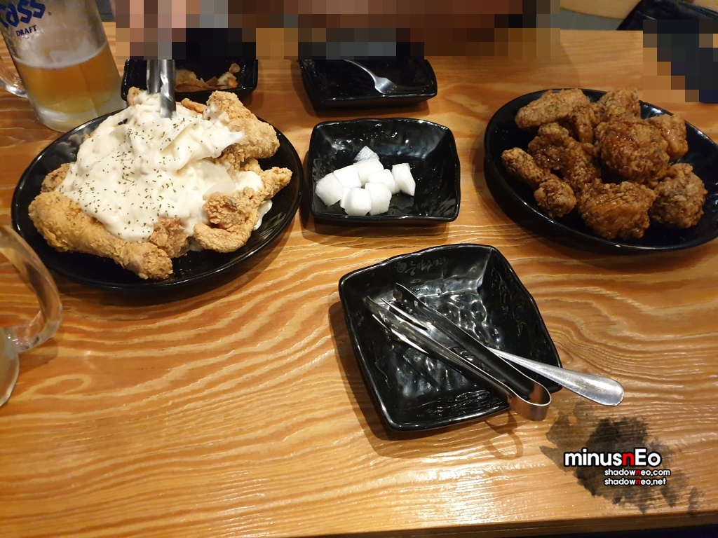 스노우어니언, 마늘간장치킨, 치킨무, 생맥주