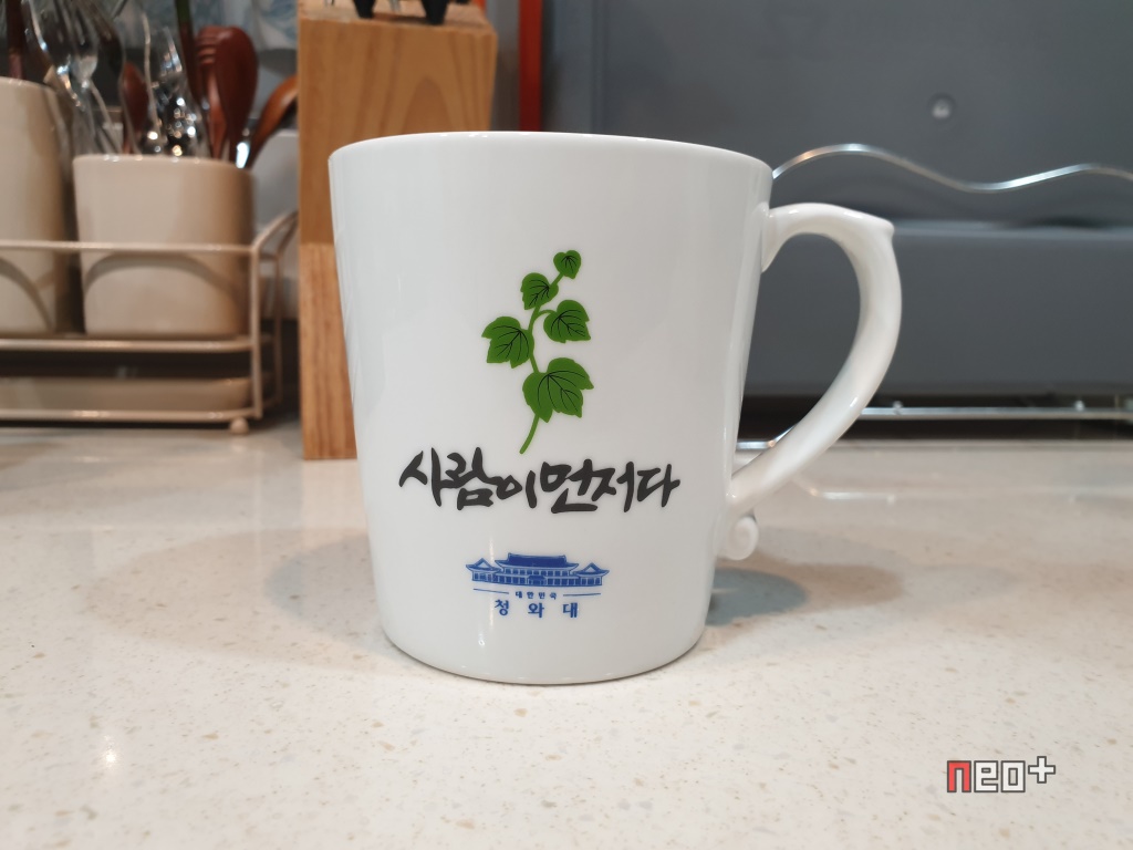 끝으로 기념품으로 받은 '사람이 먼저다' 머그컵이다.