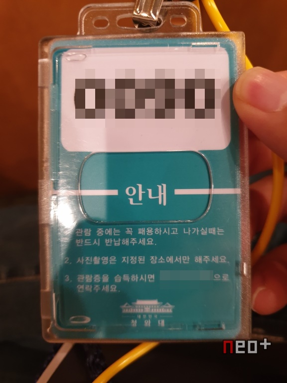 춘추관 옆에 어떤 건물로 들어가 공항처럼 소지품 검사 및 엑스레이(X-ray) 검사를 한 후 방문증을 나눠준다.