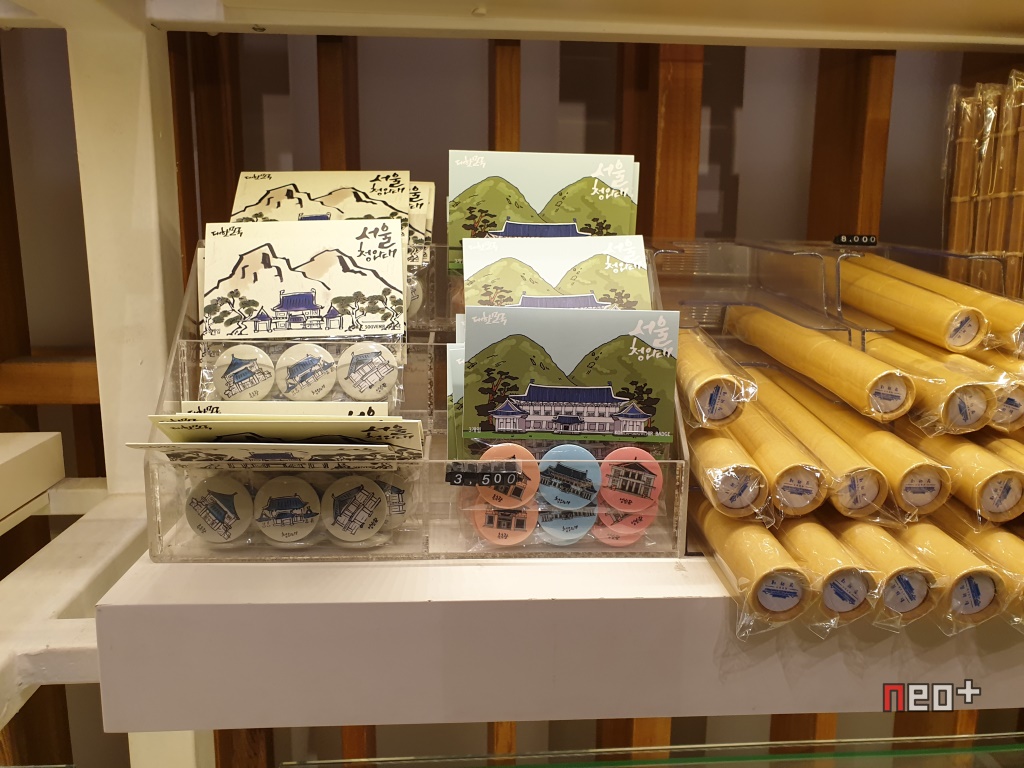 여러가지 한국적 물품과 청와대 관련 물품을 판다.